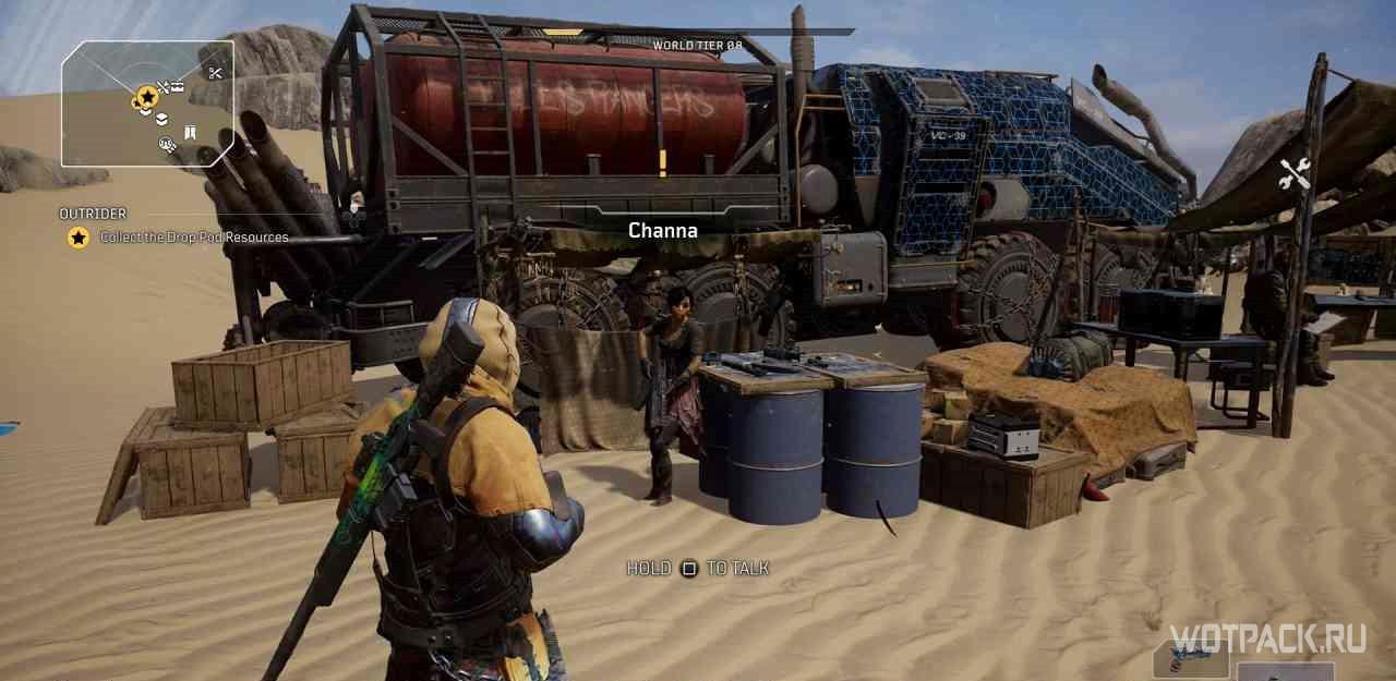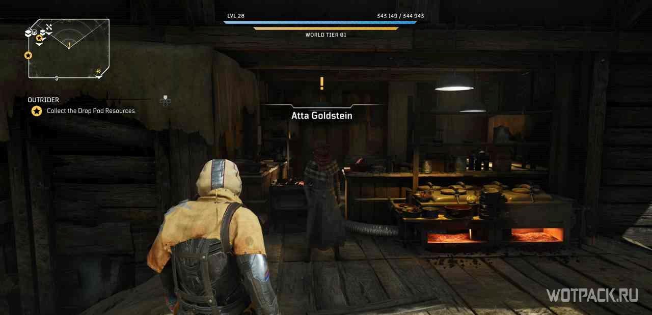 Следует поговорить с Аттой Гольдштейн, которая находится наверху, неподалеку от места быстрого перемещения в лагере. Когда игрок встанет на точку быстрого перемещения, на миникарте появится желтый восклицательный знак миссии.