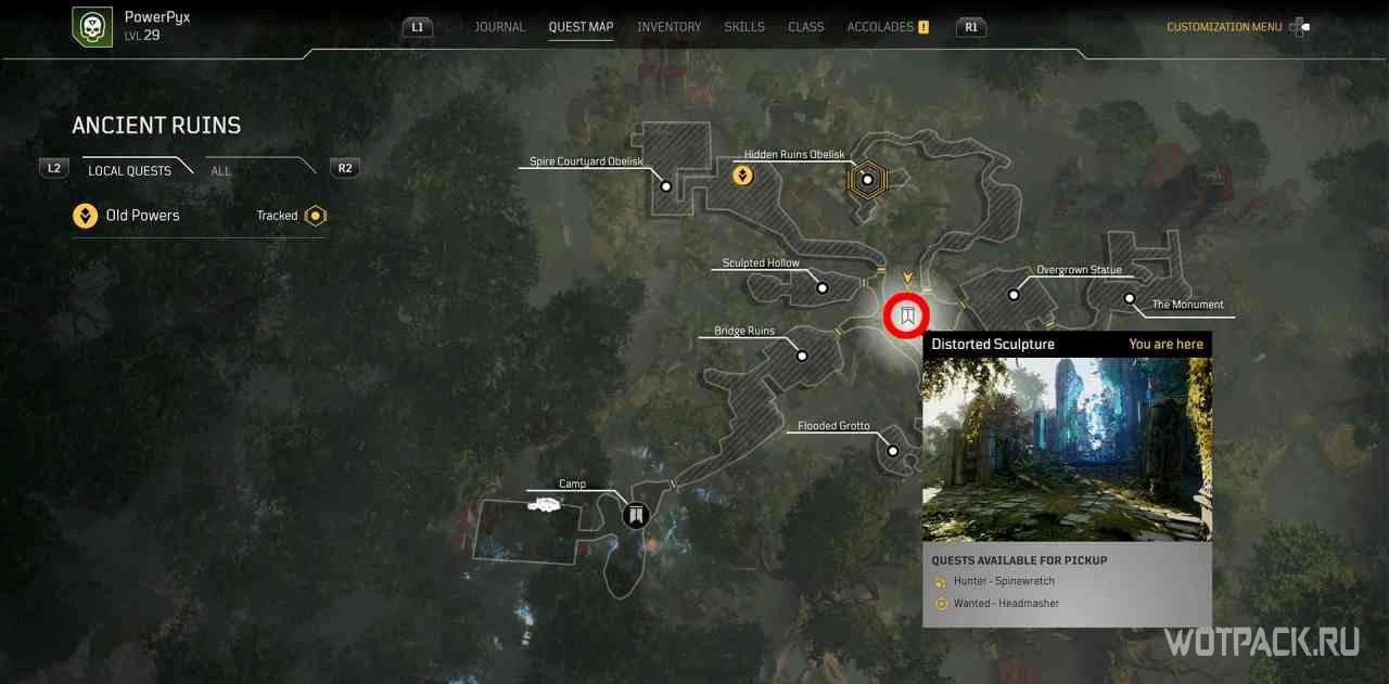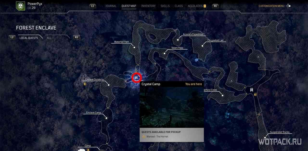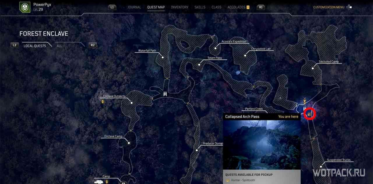 Для начала миссии нужно прочитать постер, который находится чуть выше по тропе от точки быстрого путешествия “Хрустальное озеро”. Самым быстрым способом добраться до пункта назначения по квесту будет перемещение к пункту “Рухнувшая арка.