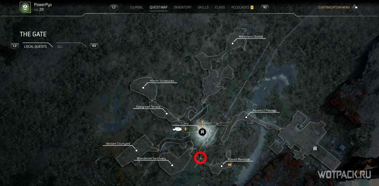 Для посещения нужной локации надо пойти в место на холме в нескольких метрах от точки быстрого путешествия “Перекресток”, которая автоматически разблокируется во время прохождения основного квеста “Воссоединение”.