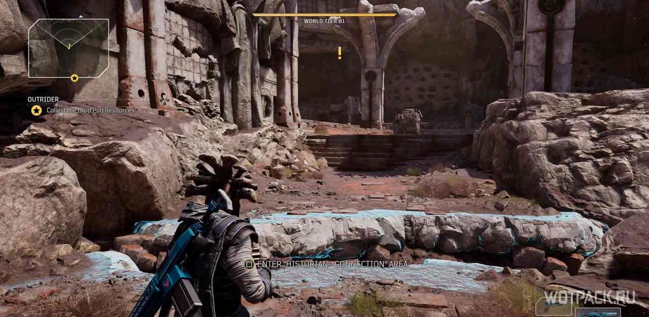 Чтобы взять задание, необходимо взаимодействовать с костями неподалеку от точки быстрого доступа “Рухнувшая арка”.