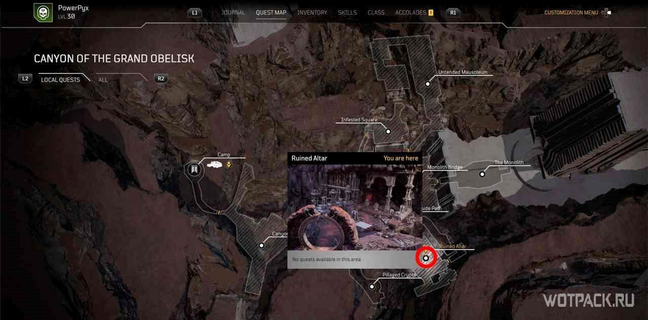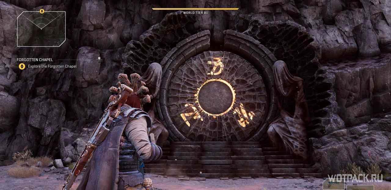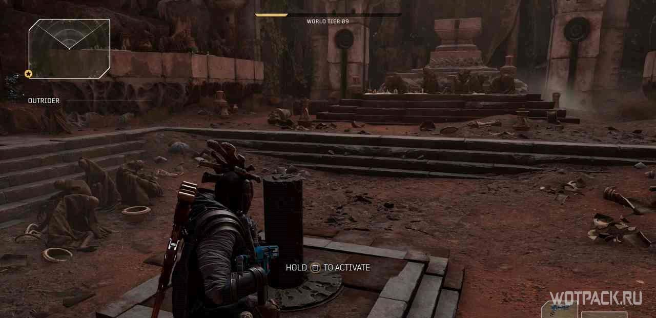 Для начала миссии надо изучить алтарь в лагере этой местности.