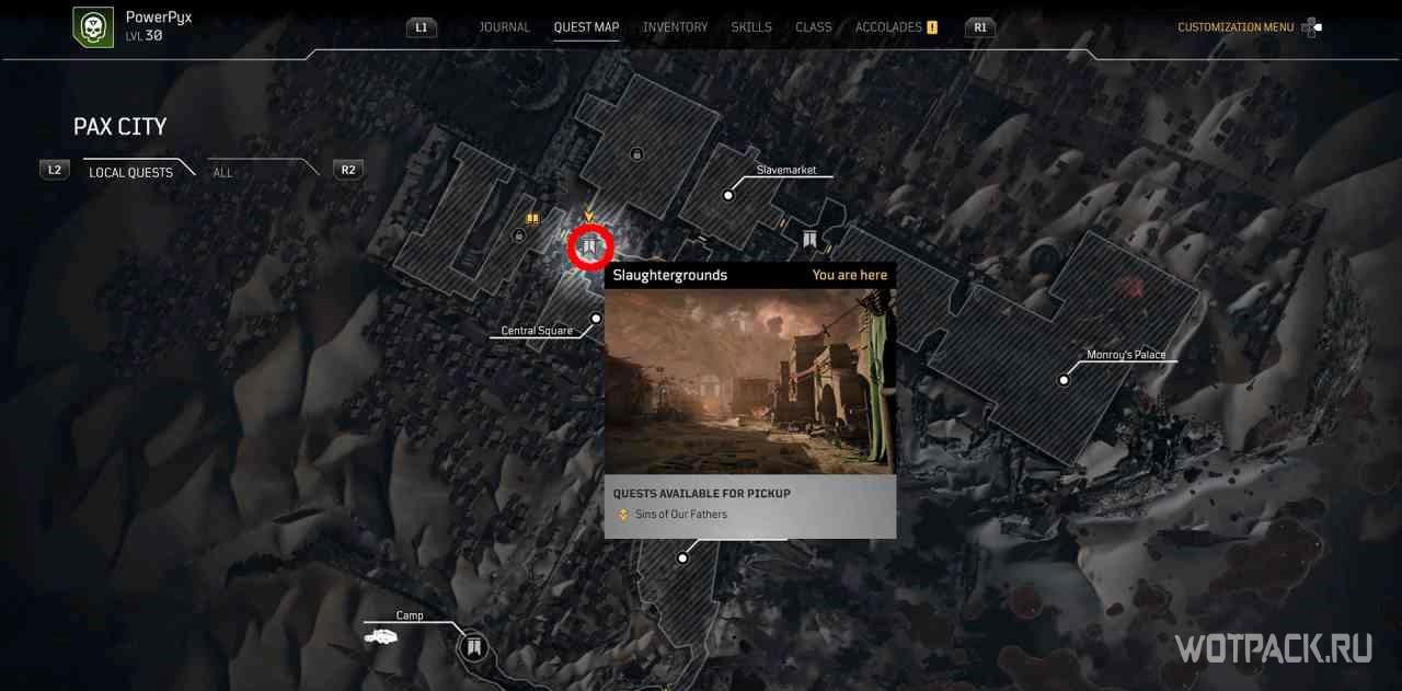 Проход, активирующий квест, находится неподалеку от точки быстрого путешествия “Бойня”.