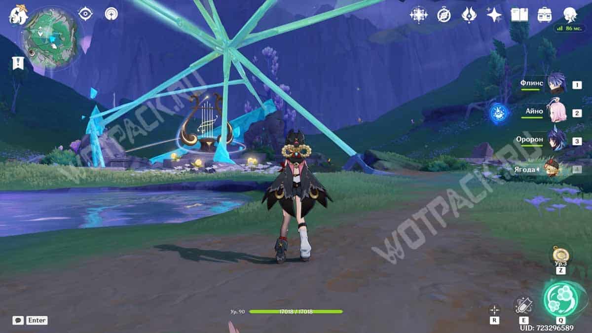 В пределах горного озера обнаружите восемь Лунокулов, часть из которых добывается во время постройки воздушного замка. Остальные окулусы территории и способы добычи представленных на скриншоте экземпляров ищите в гайде.