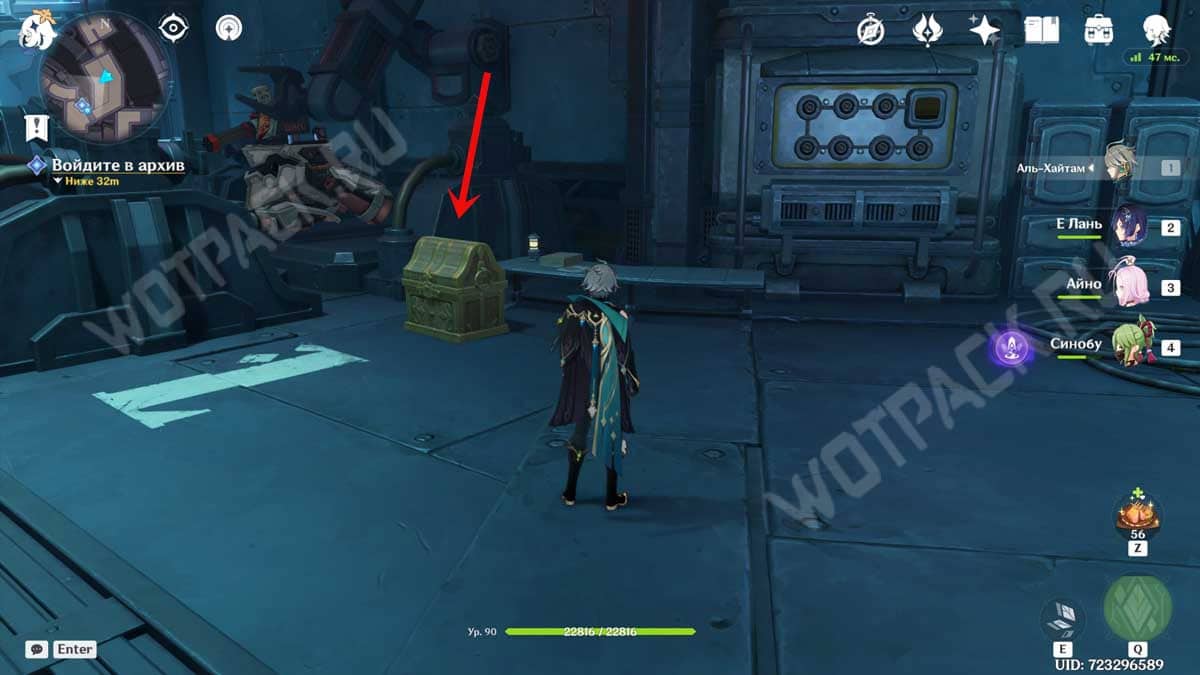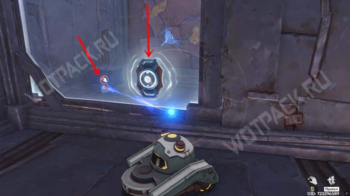 На точке следуйте за роботом-уборщиком и найдите точку, с которой сначала передвиньте ящик с синим светом, а затем подцепите ключ для открытия замков на другой стороне барьера. С сокровищницы также выпадает кассета с данными.