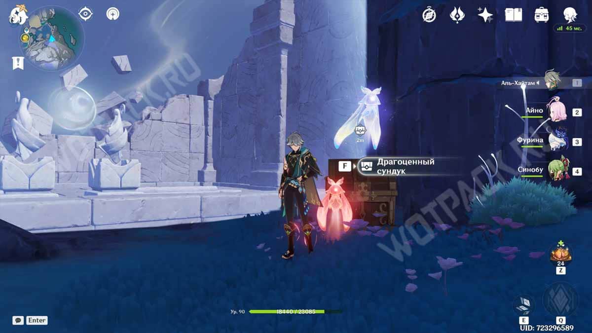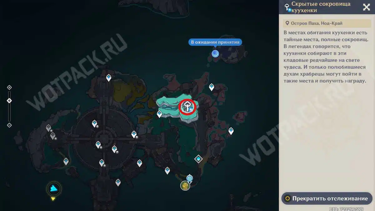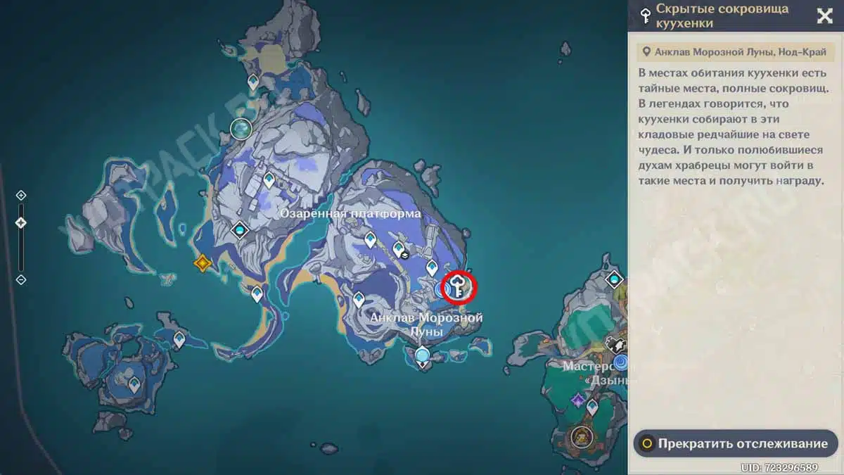 Откройте все скрытые сокровища куухенки в областях Лемпо, Хийси и Паха в Нод-Крае, чтобы разблокировать ачивку «Подношения Ночи: Острова лунного света 1» в Genshin Impact из раздела «Нод-Край: Рай лунного сияния и странствований 1» и получить 10 камней истока.