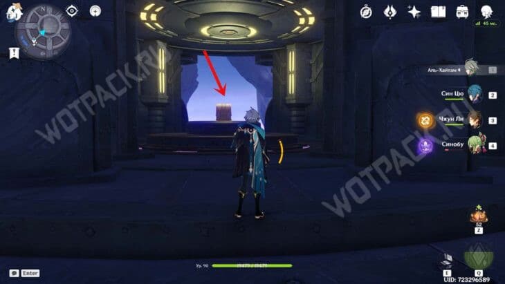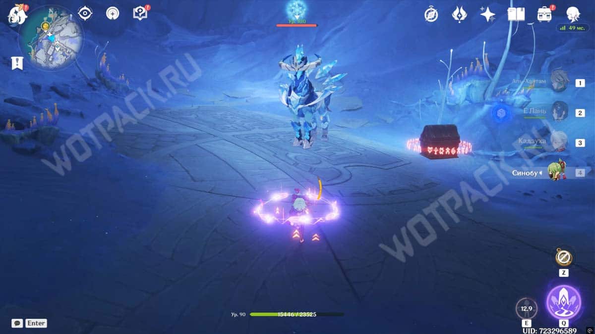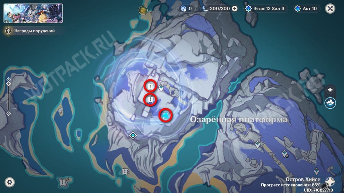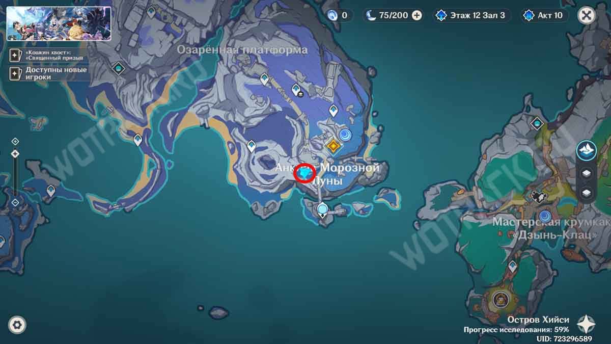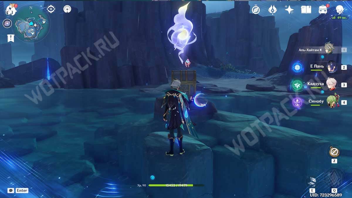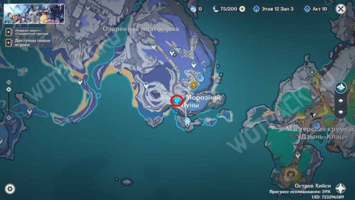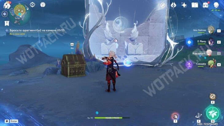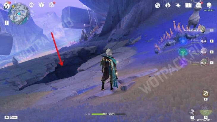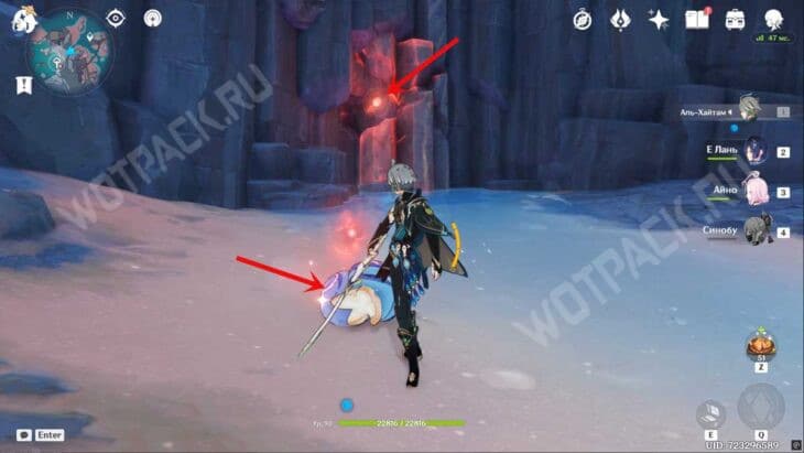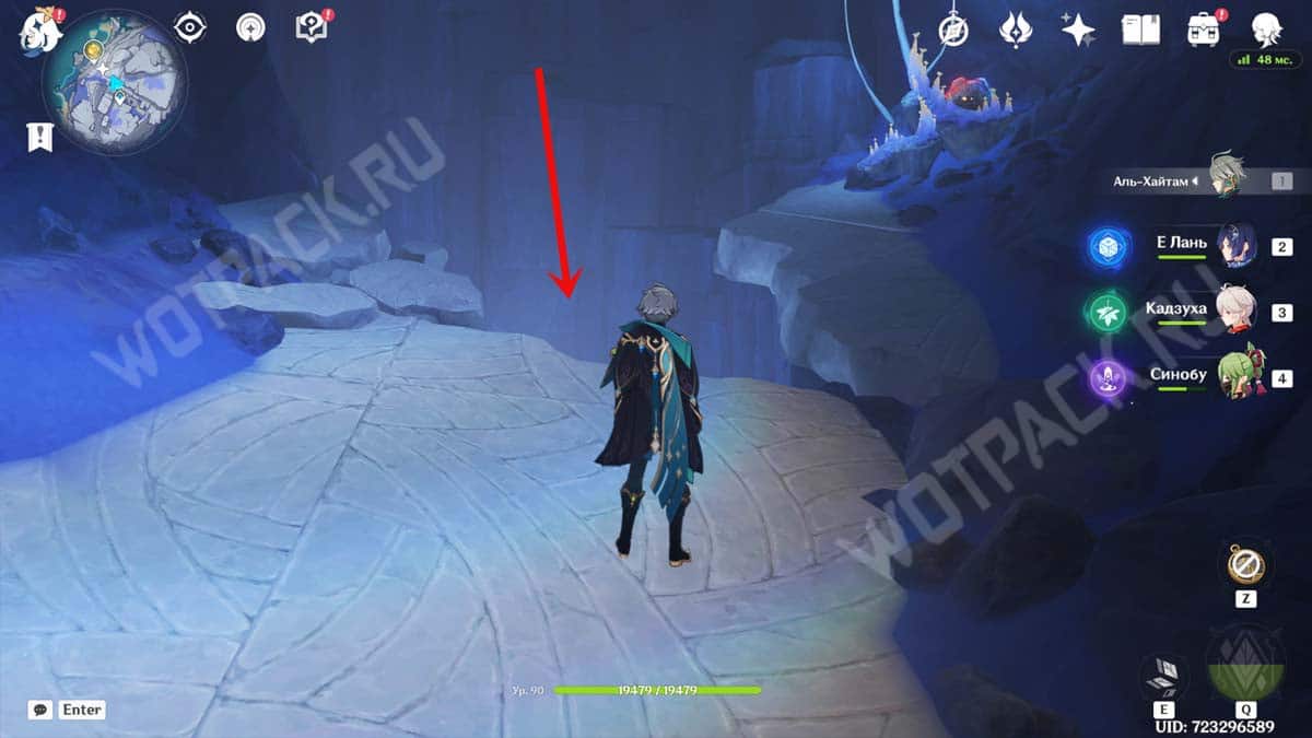 Чтобы раздобыть камень, необходимо спуститься вниз и одолеть Крио врага. Расщелина в земле располагается чуть ниже телепорта в центральной части локации.