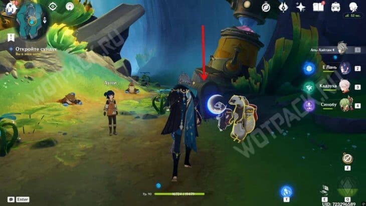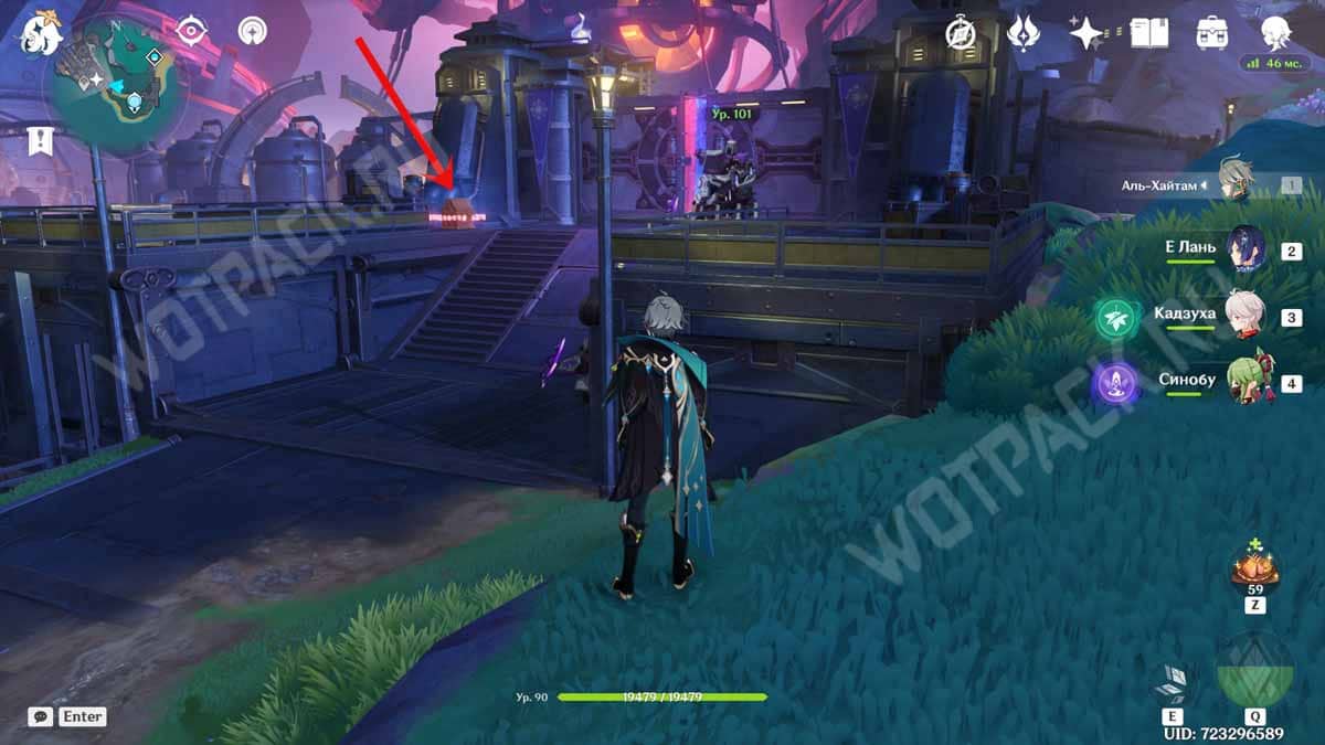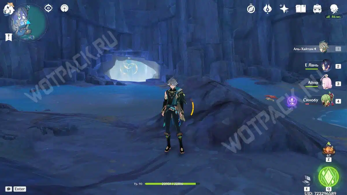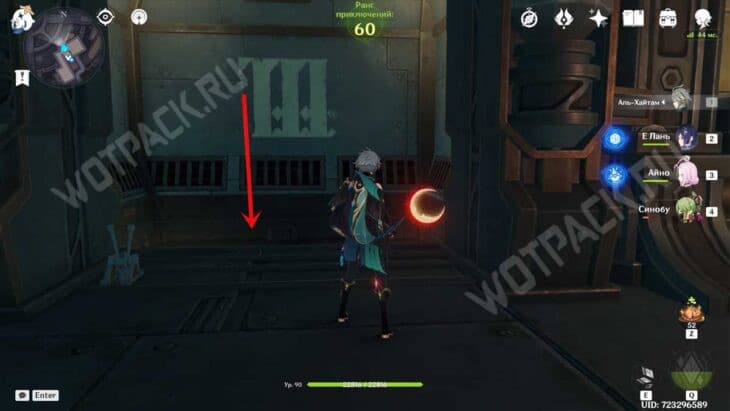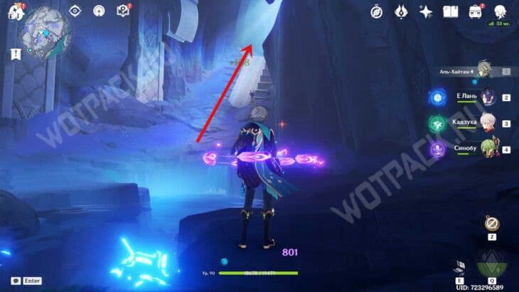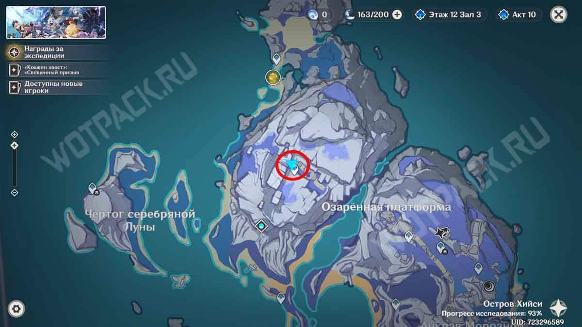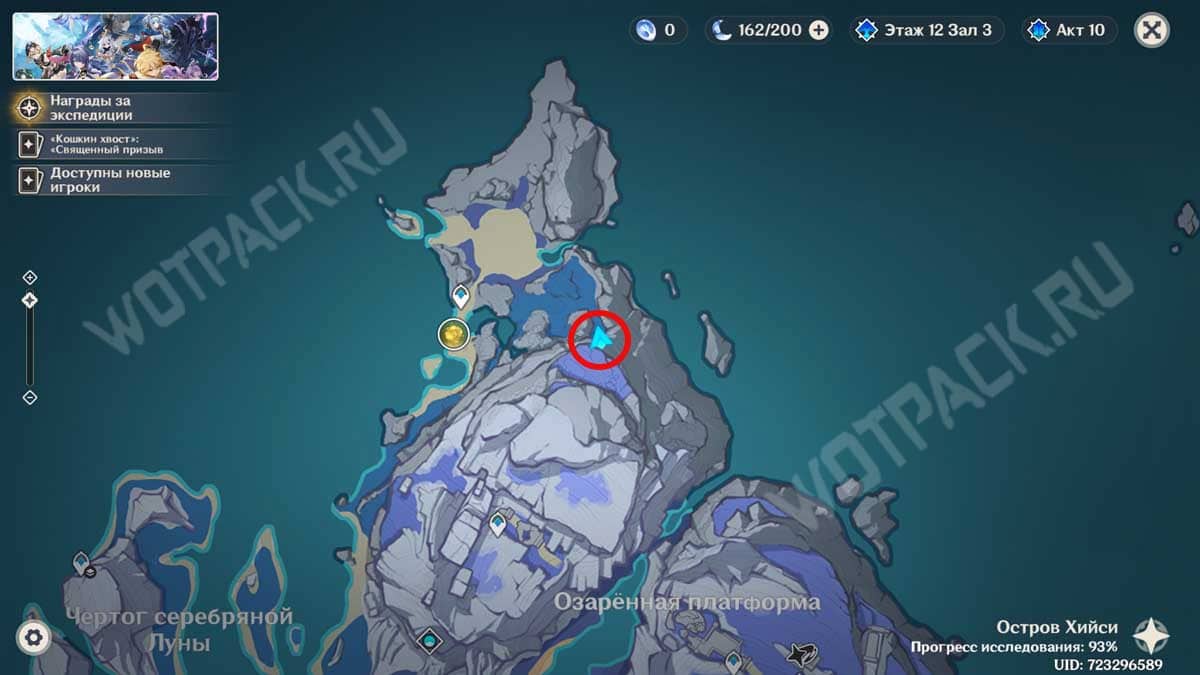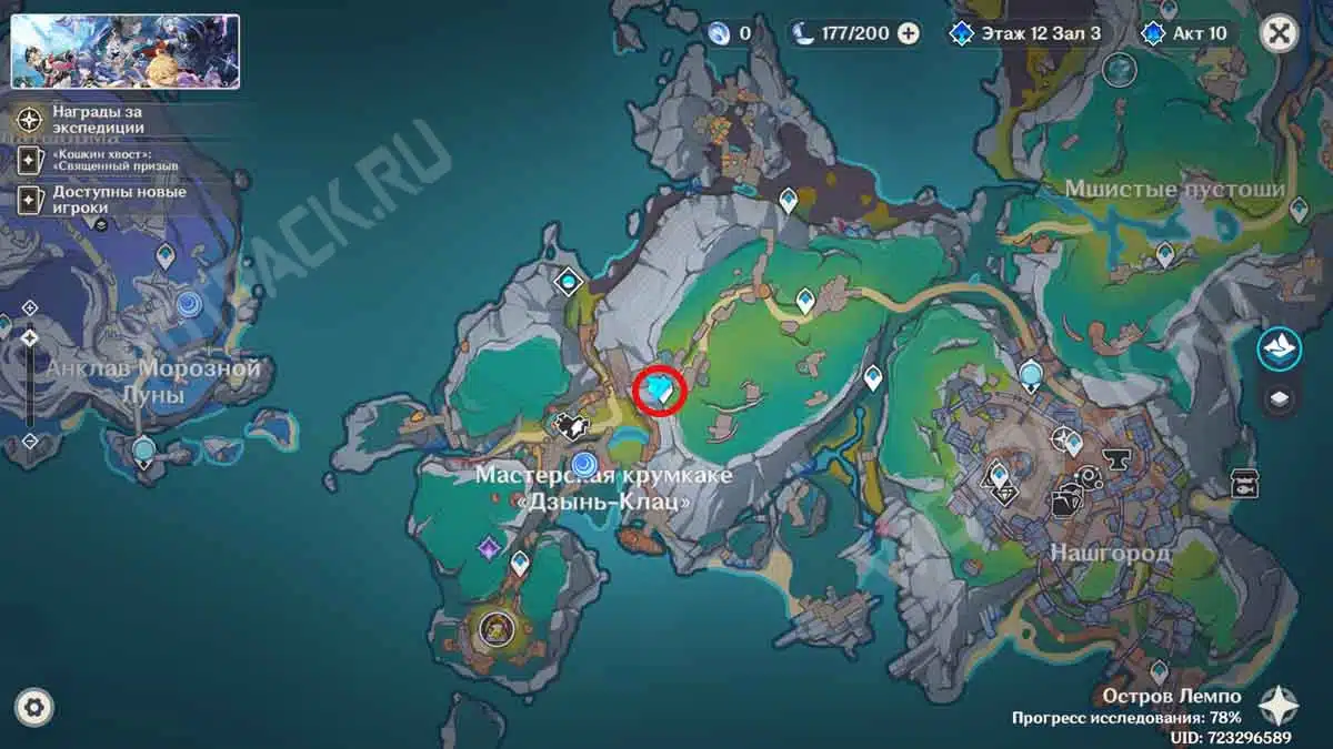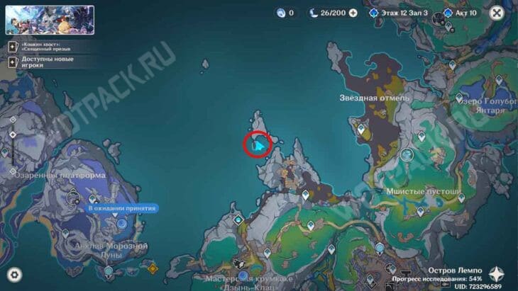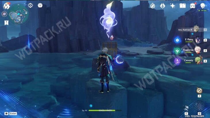 Чтобы раздобыть камень, необходимо спуститься вниз и одолеть Крио врага. Расщелина в земле располагается чуть ниже телепорта в центральной части локации.