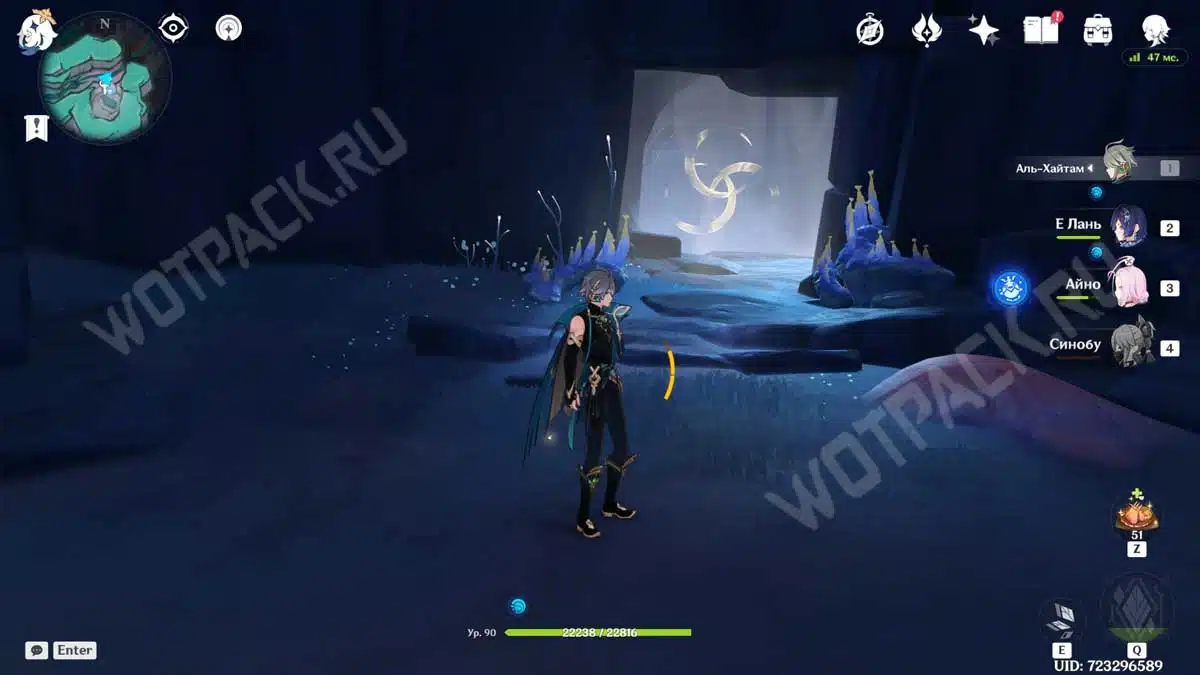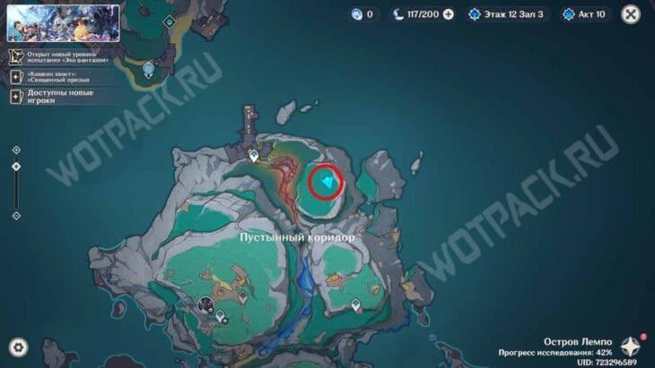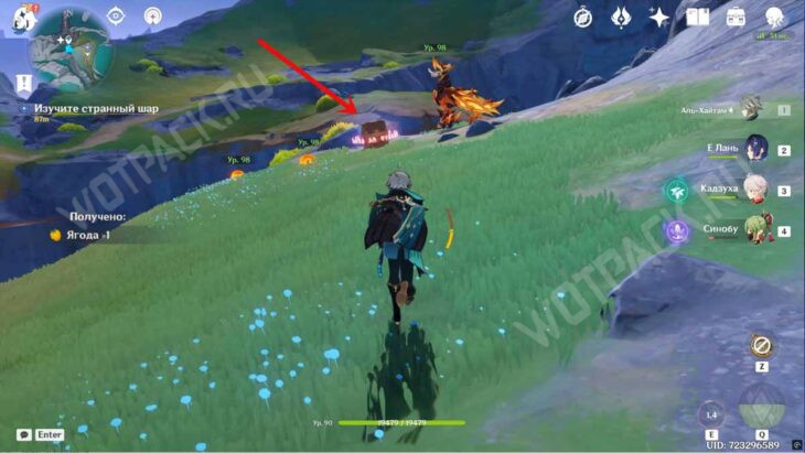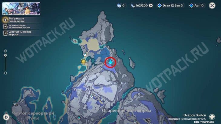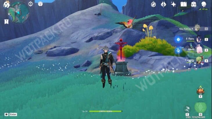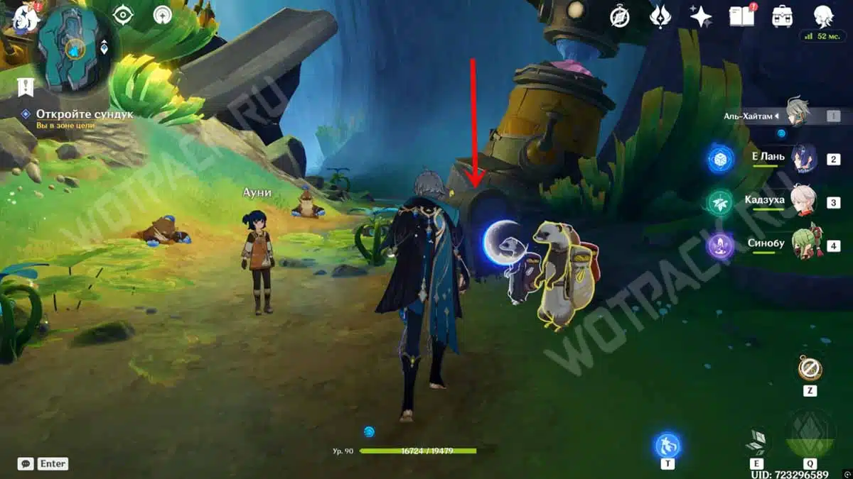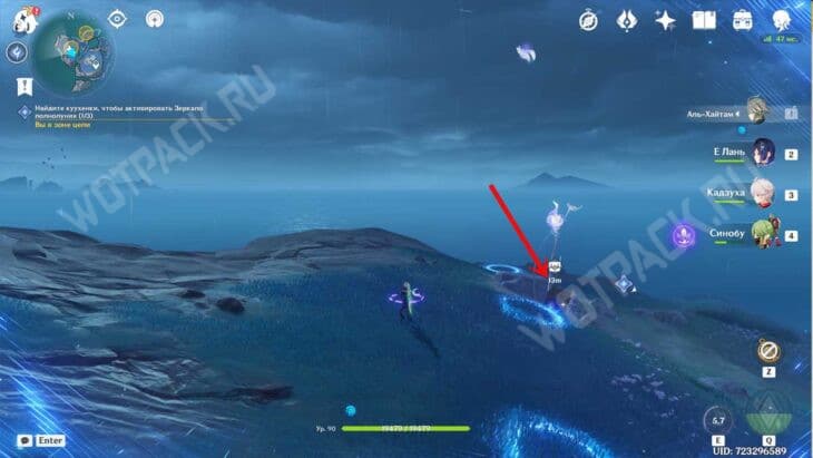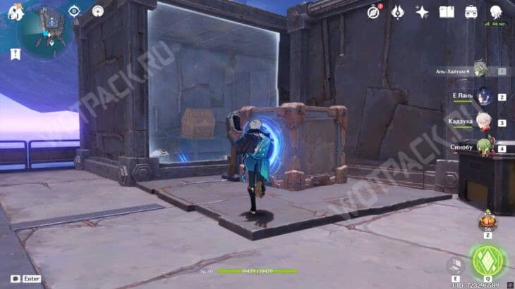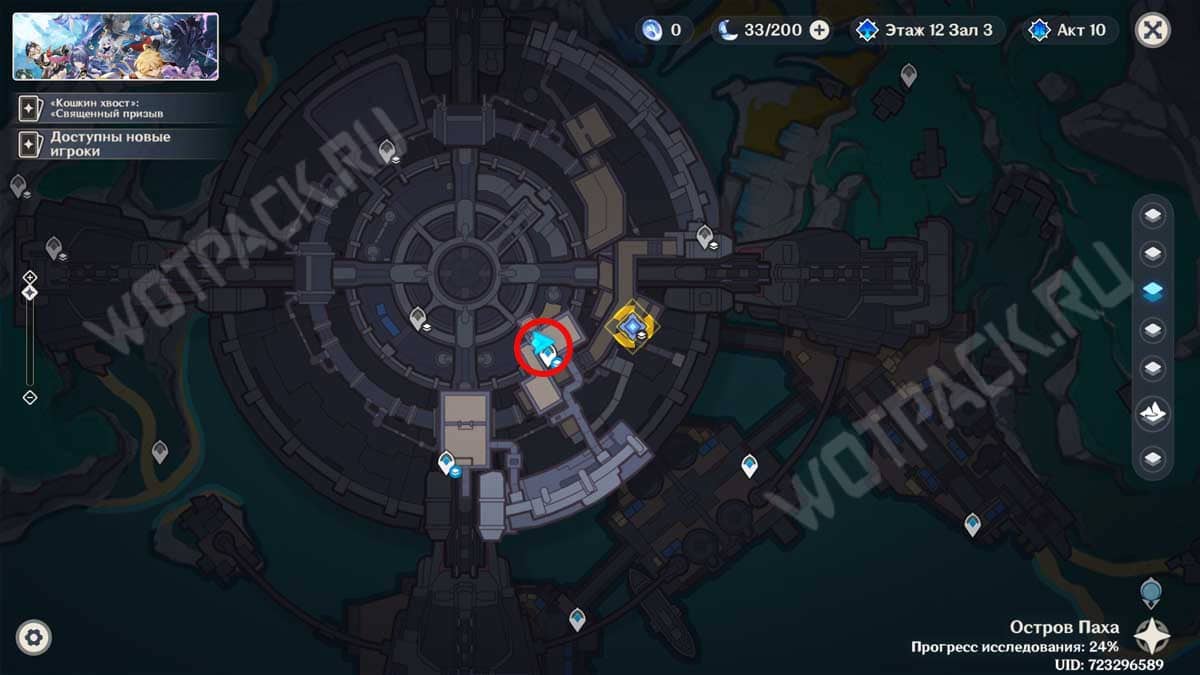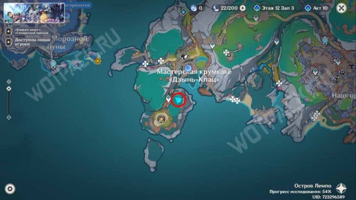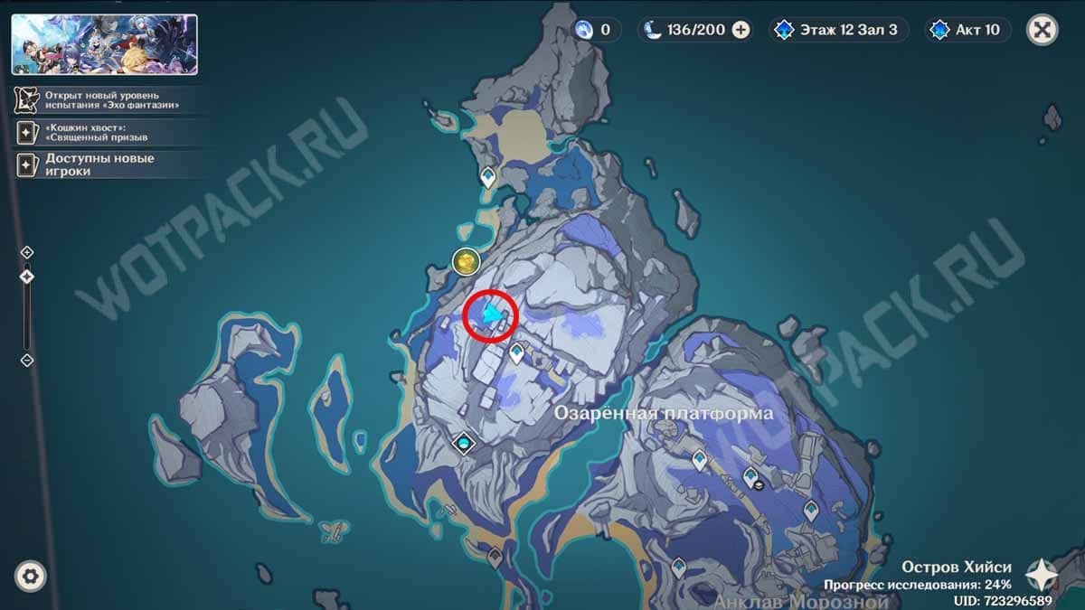 Чтобы раздобыть камень, необходимо спуститься вниз и одолеть Крио врага. Расщелина в земле располагается чуть ниже телепорта в центральной части локации.