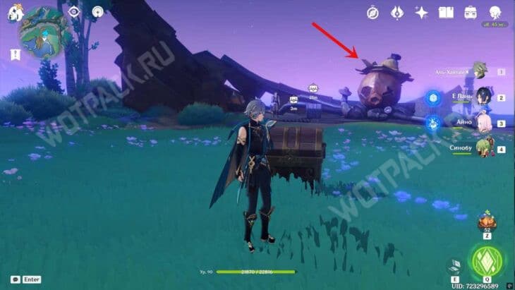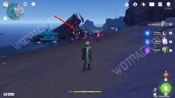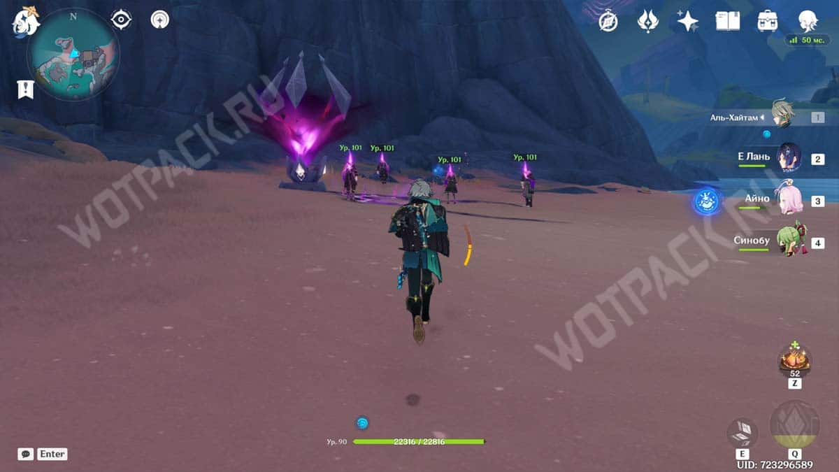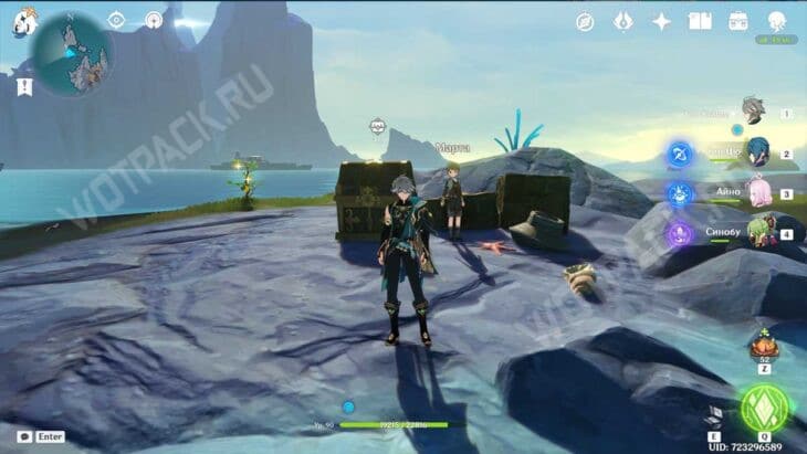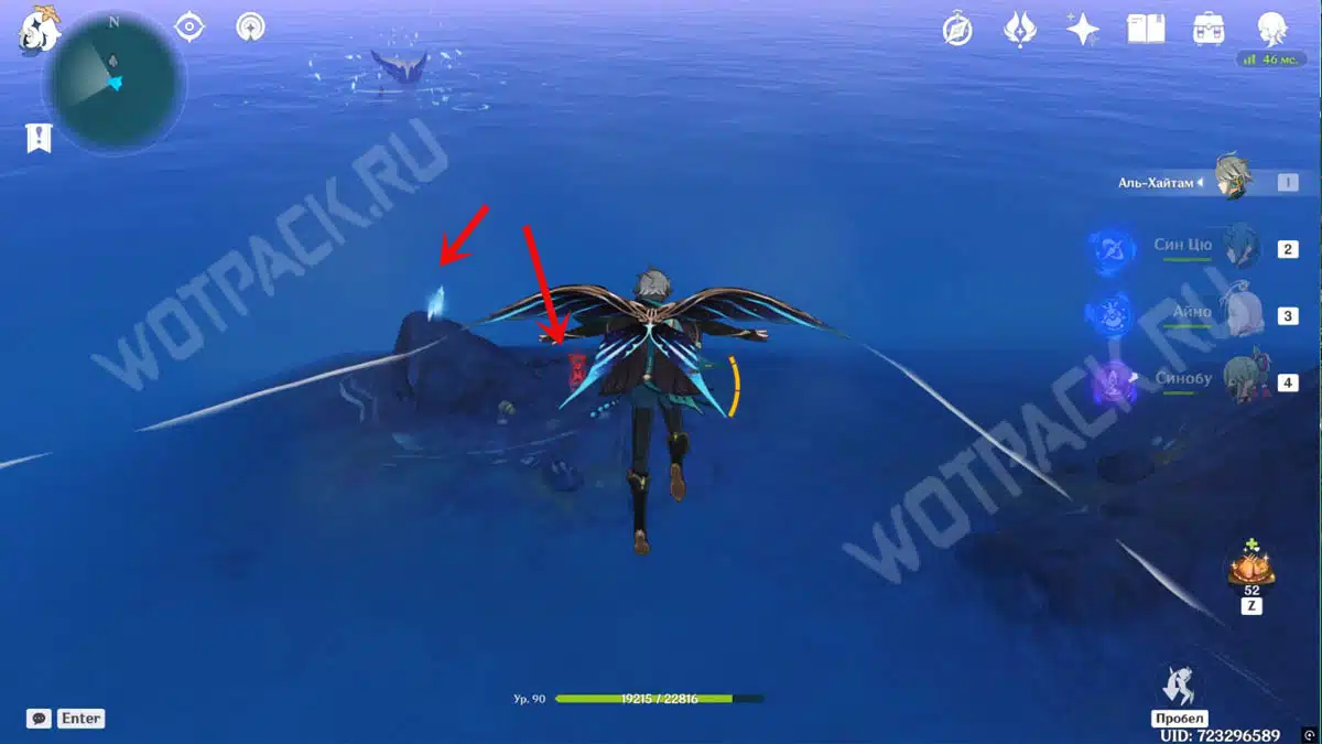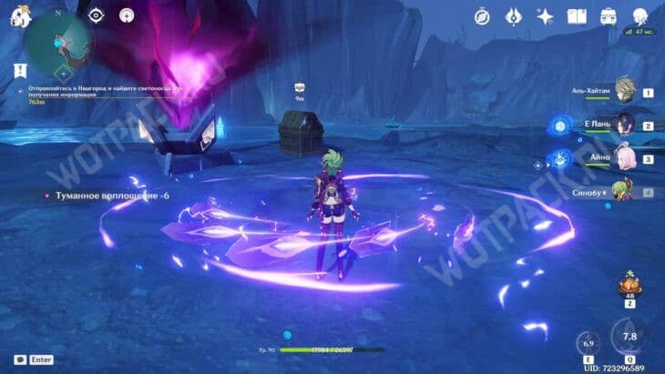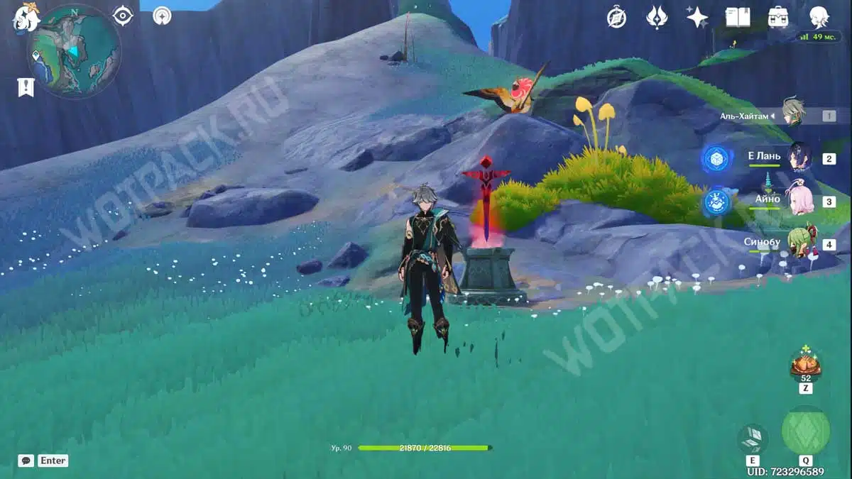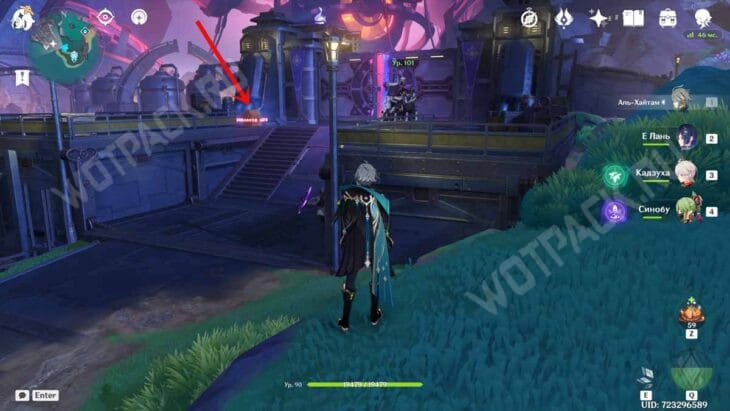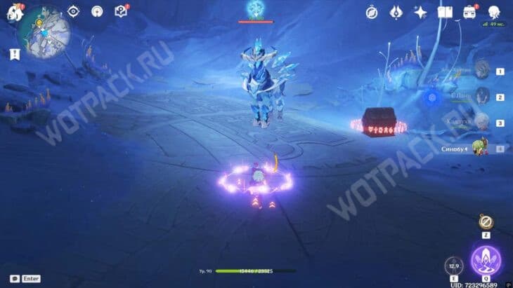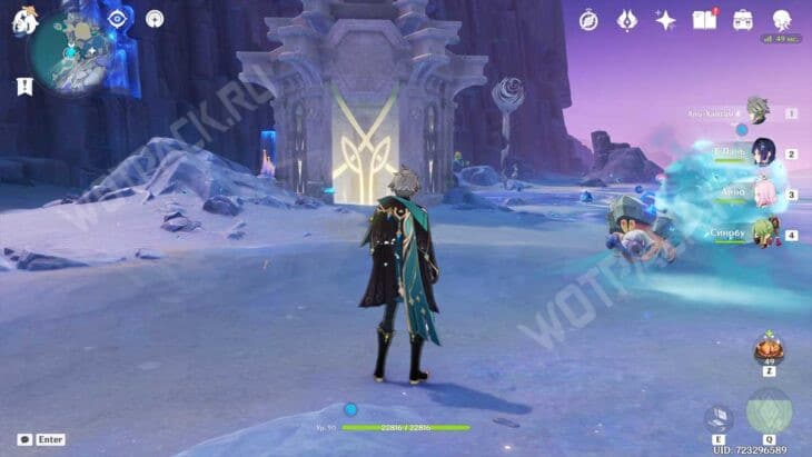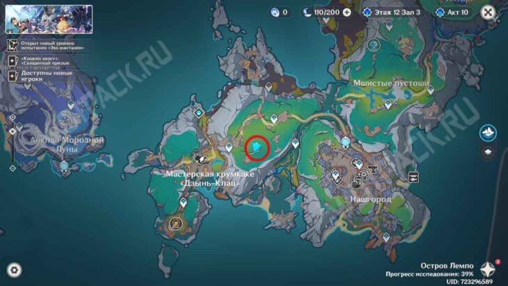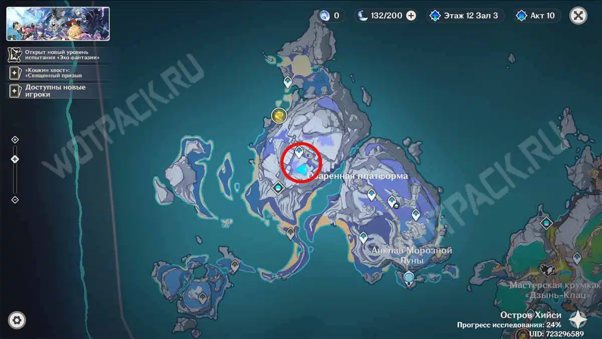 Чтобы раздобыть камень, необходимо спуститься вниз и одолеть Крио врага. Расщелина в земле располагается чуть ниже телепорта в центральной части локации.