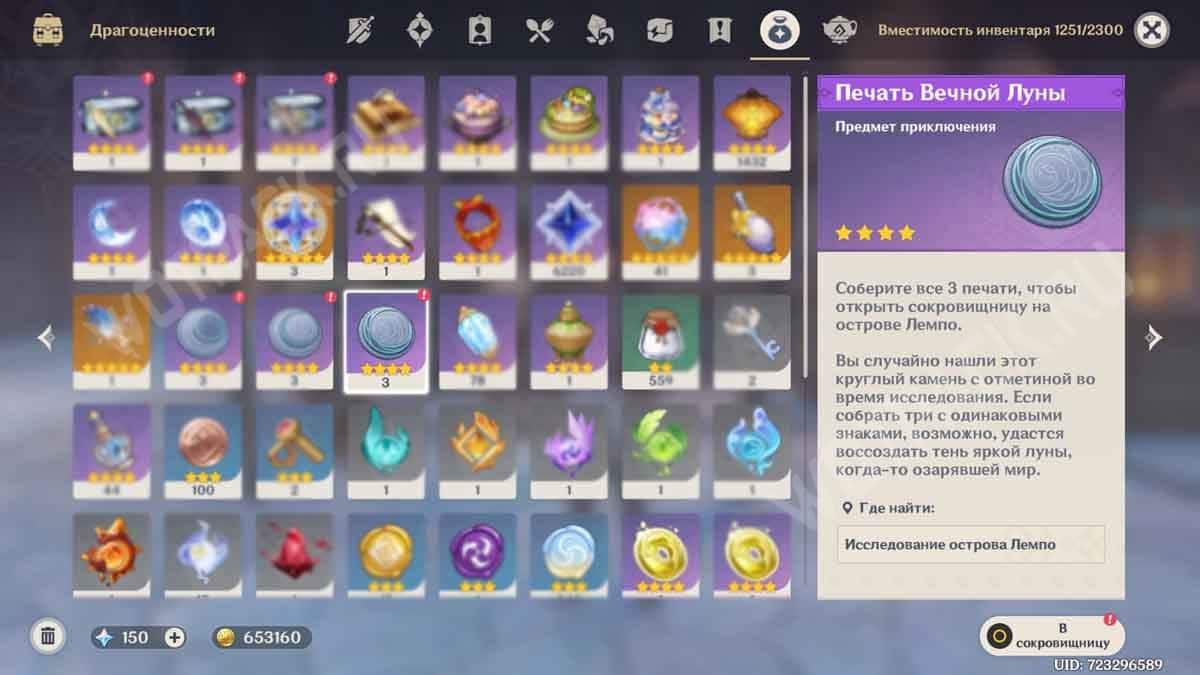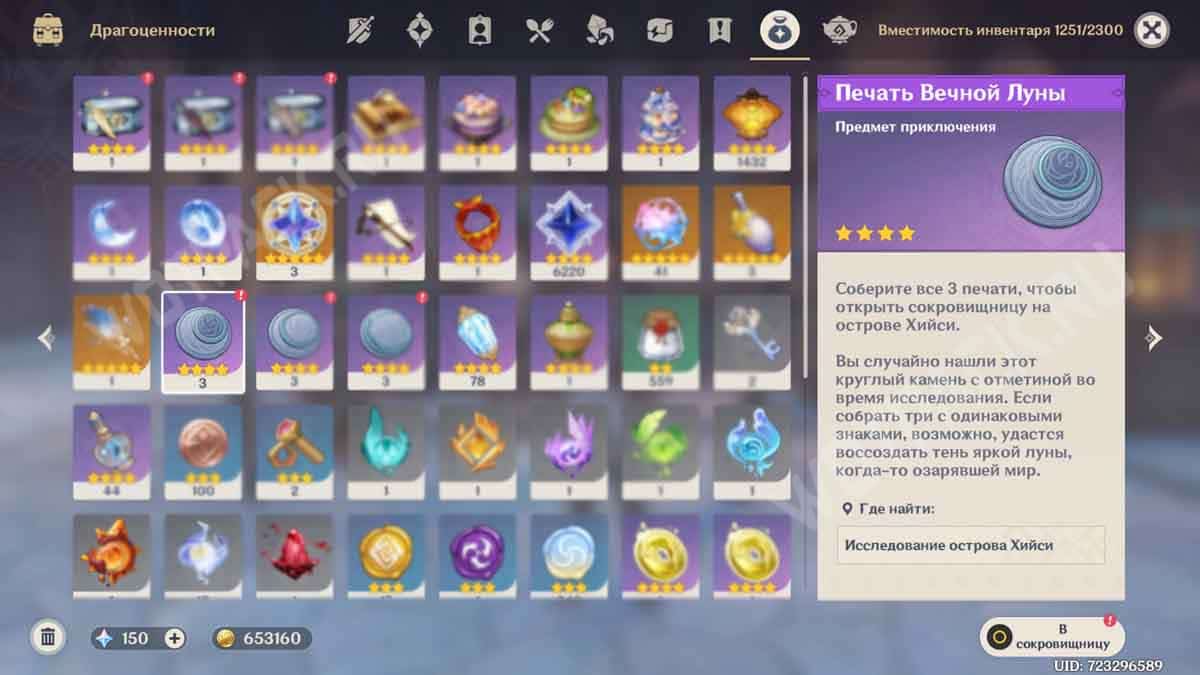 На артефакте с территории острова Паха видна символика средней властительницы в виде тонкой линии полумесяца. Всего предстоит проверить 17 сокровищниц, в которых могут быть лунные монеты. Большая часть из них размещена в коридорах бюро.