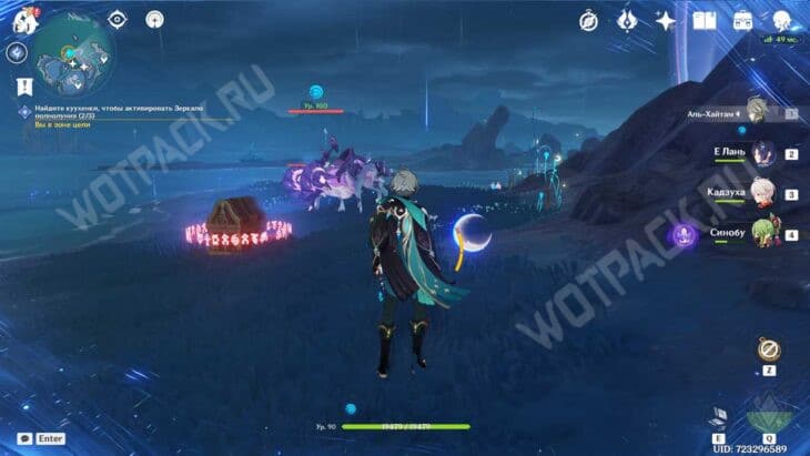 Пройдите на северо-восток и победите Дикую Охоту, стоящую в поле. После ликвидации двух волн мобов появится хранилище лунной монеты.