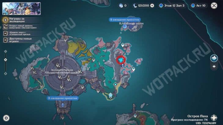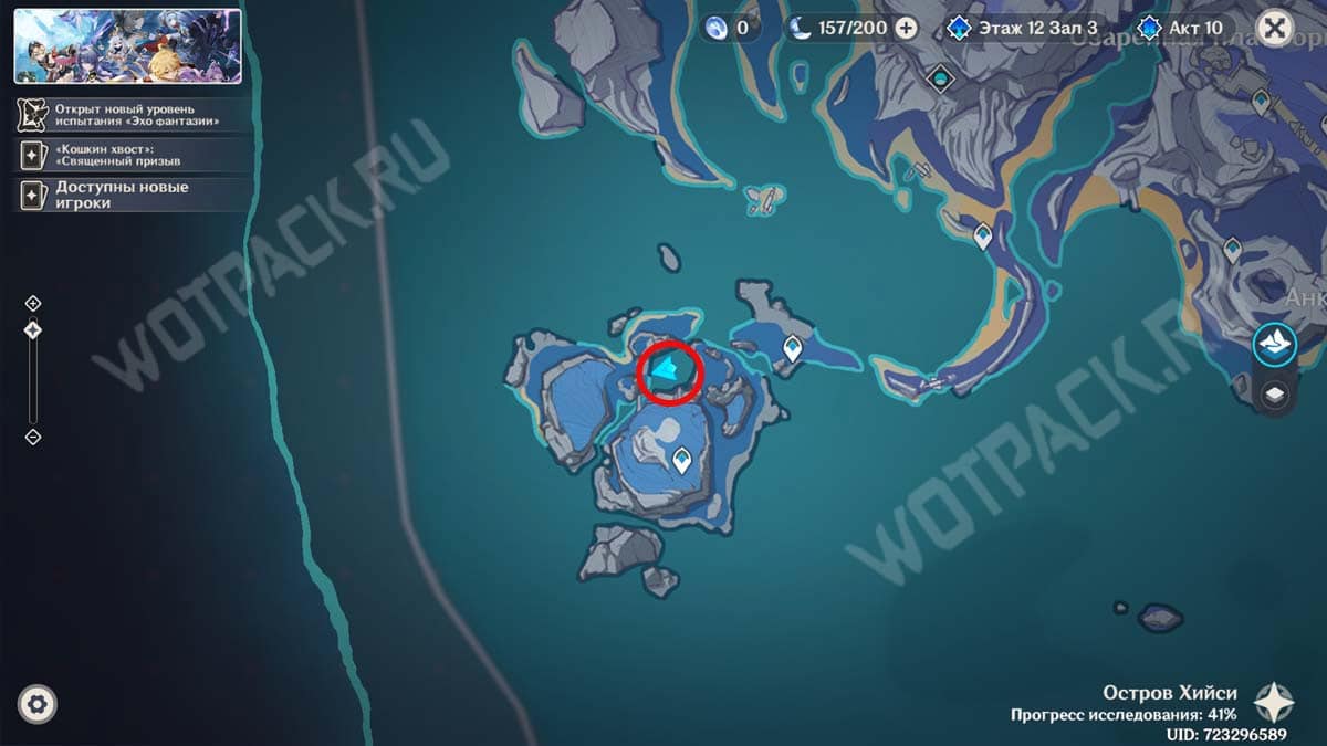 Пройдите испытание со сбором частиц на отдаленном острове для получения одного из фрагментов из роскошной сокровищницы.