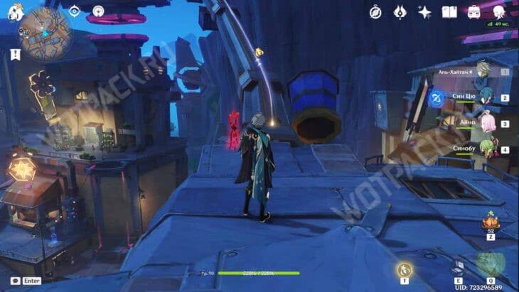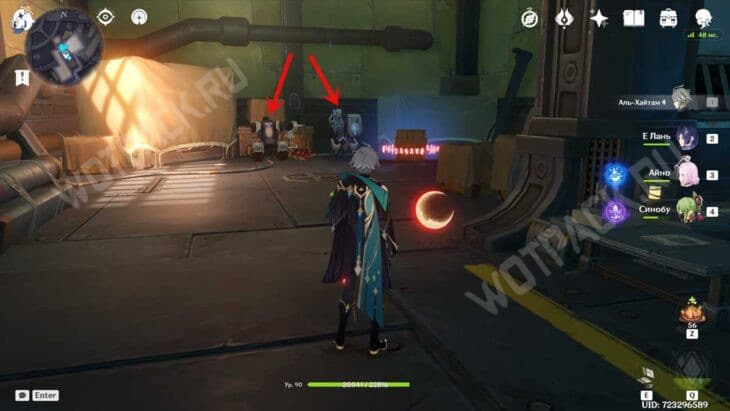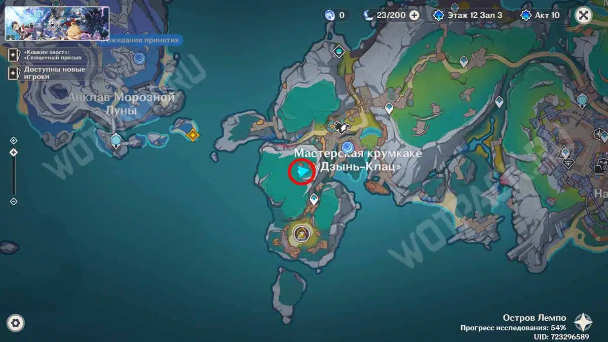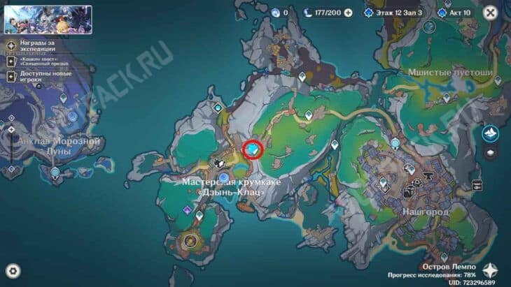 Выше локации Мастерская Дзынь-Клац откроете хранилище с лунным камнем. Взберитесь по скале и одолейте Пиро Потомка ночи.