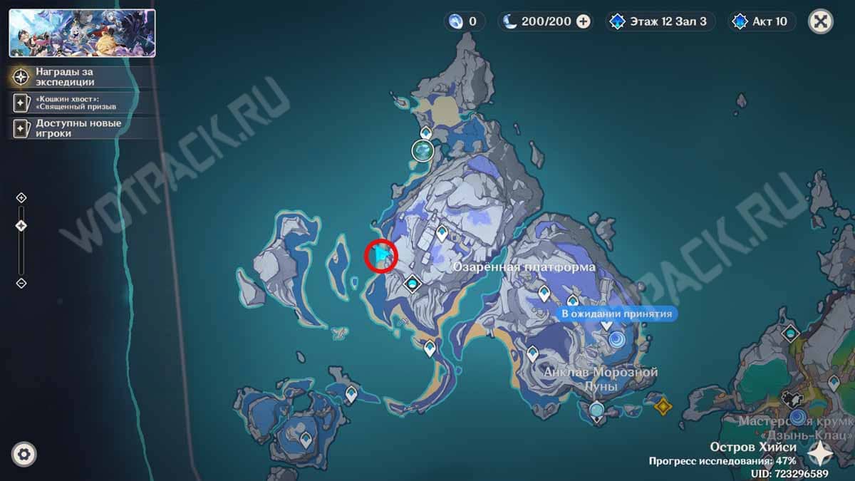 От телепорта на Анклаве Морозной Луны спуститесь к побережью и повернитесь в сторону скалы. Внизу покажется белый барьер из расщелины, куда и требуется поднести собранные реликвии.