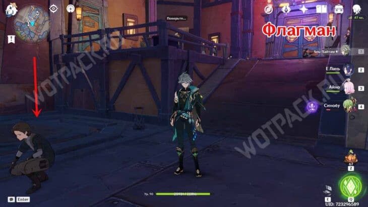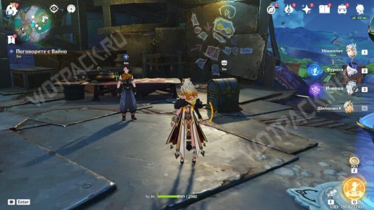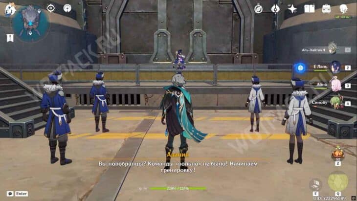 С внешней стороны бюро наткнетесь на инструктаж для новобранцев от опричника Фатуи. Встаньте в строй и дождитесь своей очереди в расчете, после чего выберите верный ответ.