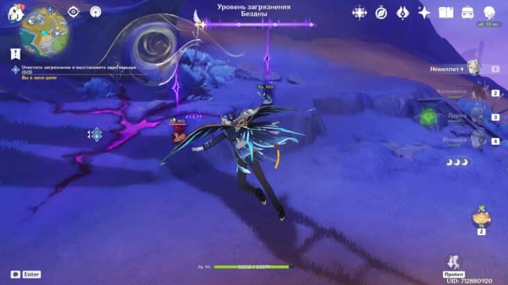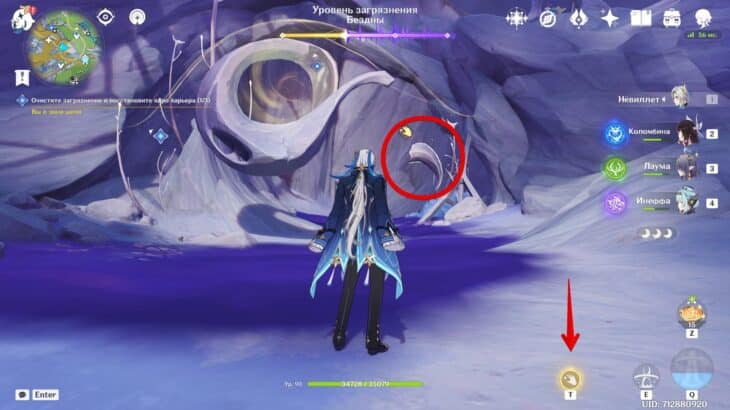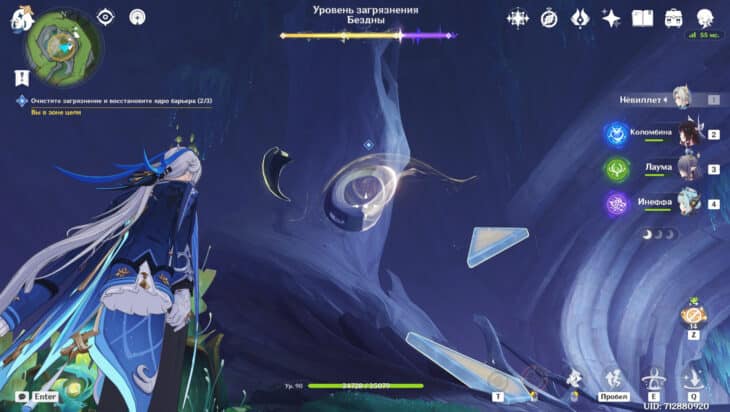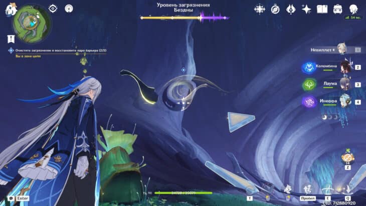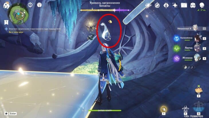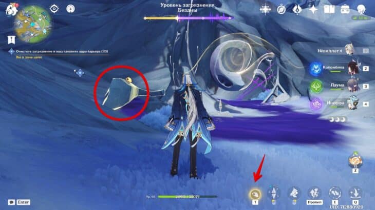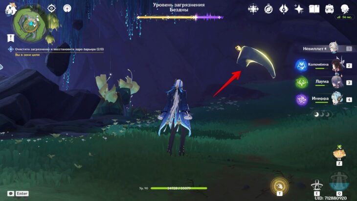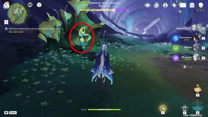Сразившись с толпой монстров, снизите уровень загрязнения. Среди чудовищ встретятся хиличурлы разных видов и Рыболовы скрытых глубин. Последние слабы перед Лунными реакциями и элементальными атаками.
