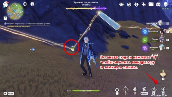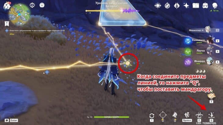 Используйте умение на «Q», чтобы зафиксировать энергетическое ядро. Всё изначально верно расположено, поэтому больше делать ничего не нужно. Если что-то нарушили, то возле растения активируйте «Сброс».
