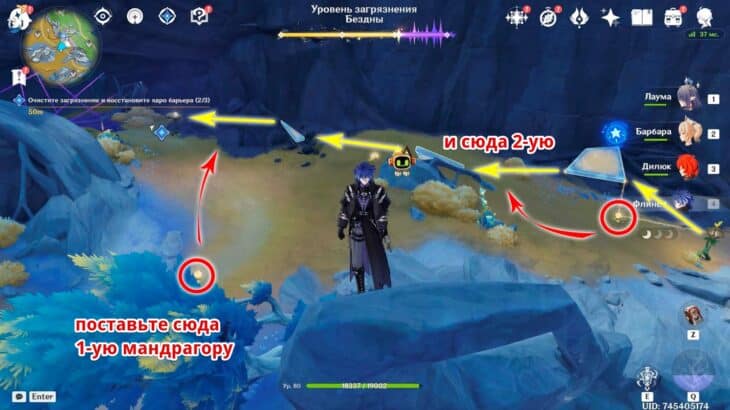 Следуйте за Иллуги и активируйте ядро барьера
