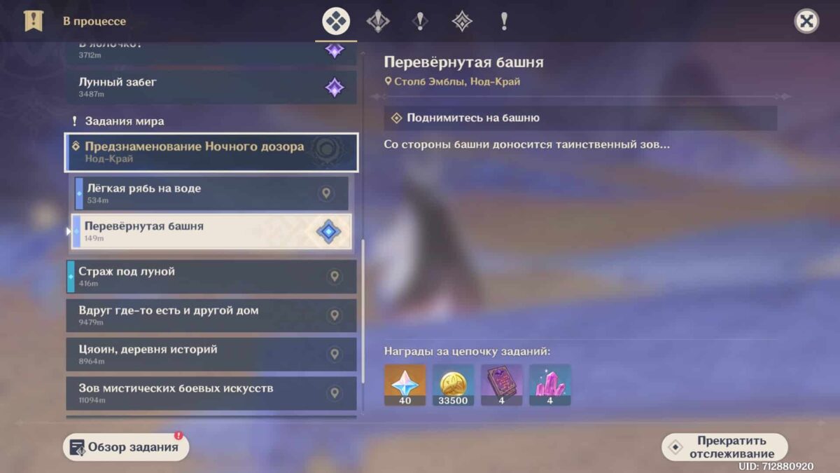 Перевернутая башня — второстепенная миссия в Genshin Impact, в которой нужно убрать скверну в окрестностях Столба Эмблы. Уничтожив несколько проявлений Дикой Охоты, услышите таинственный зов защитницы Серебряного фитиля и заручитесь её поддержкой. Очистите загрязнение и восстановите ядро барьера три раза, чтобы встретиться с альвом Алией и вернуть первозданный вид вершине башни.
