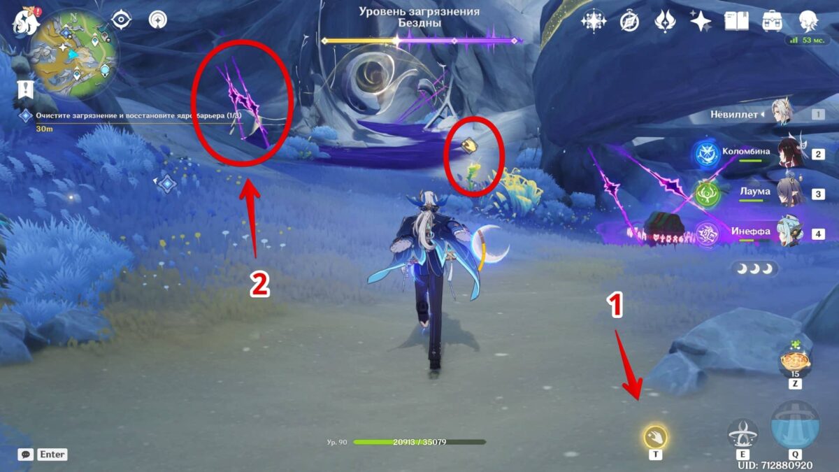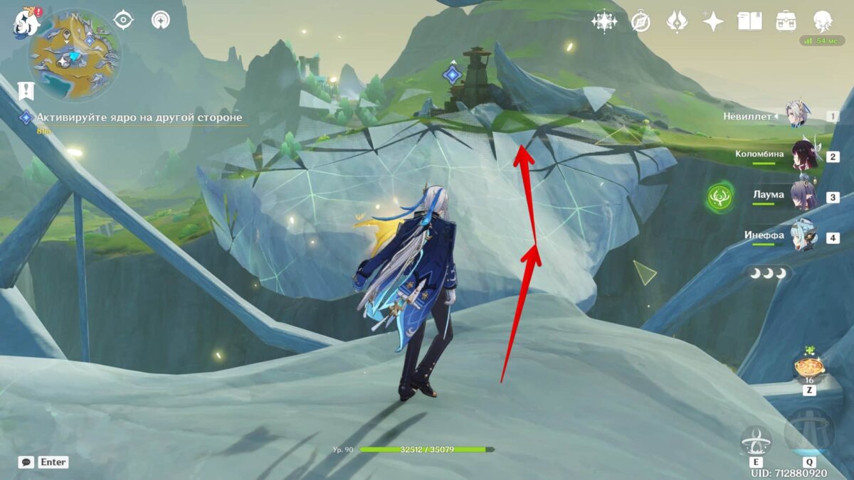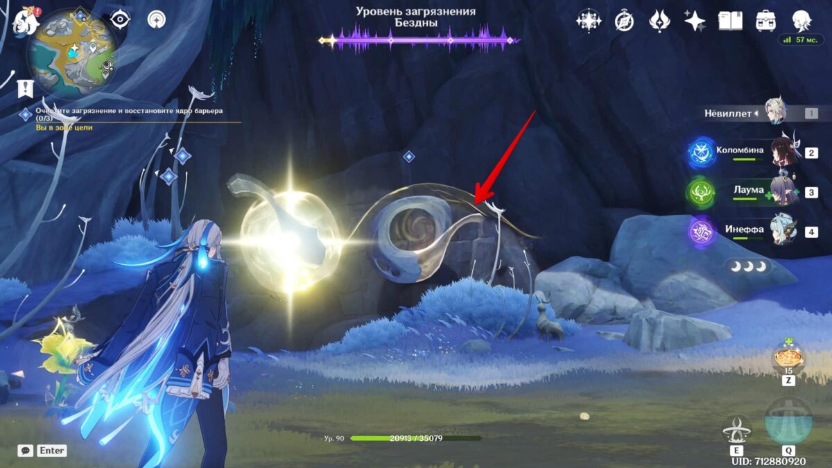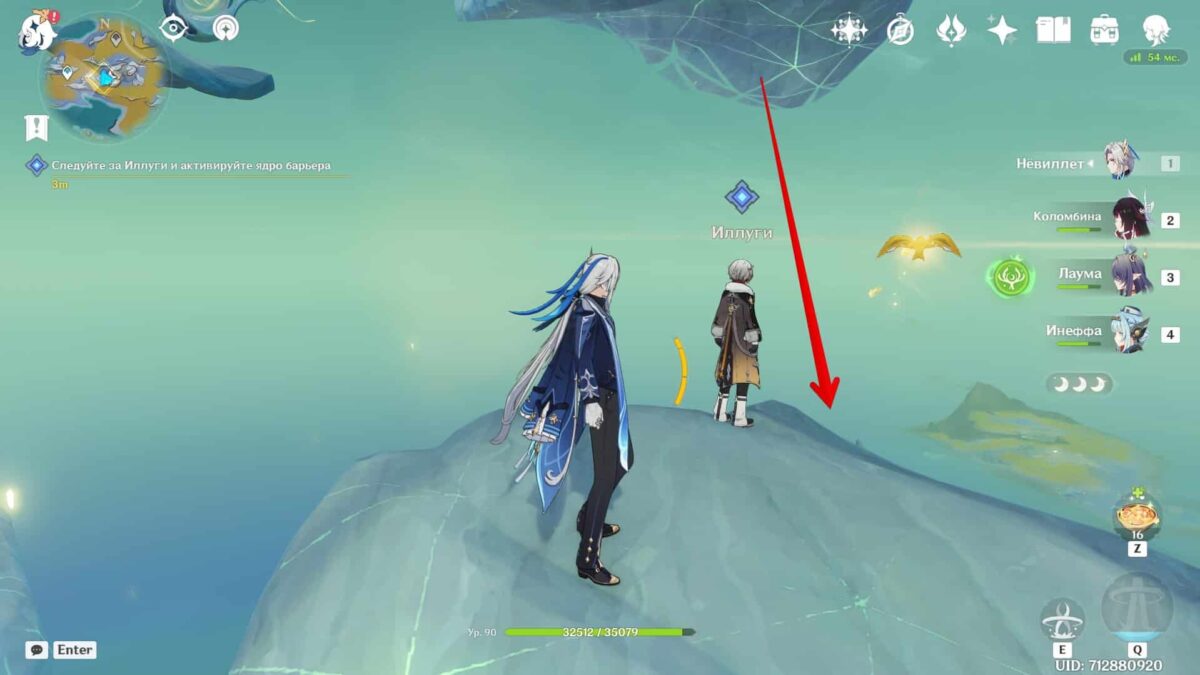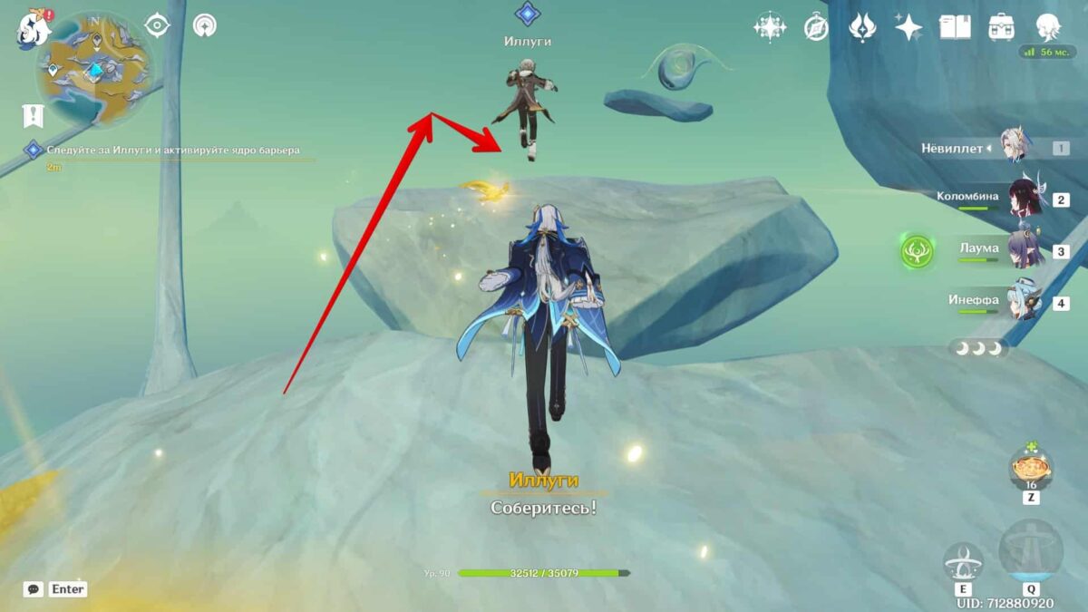 Следуйте за Иллуги и активируйте ядро барьера