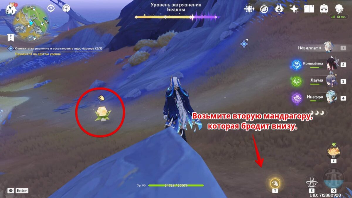 Осмотритесь на склоне и схватите другую мандрагору. Тем же методом найдите точку соединения и оставьте её там.