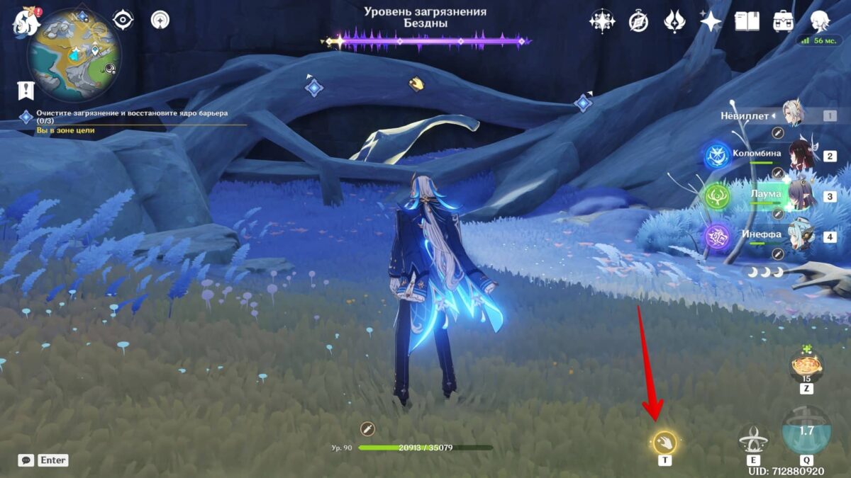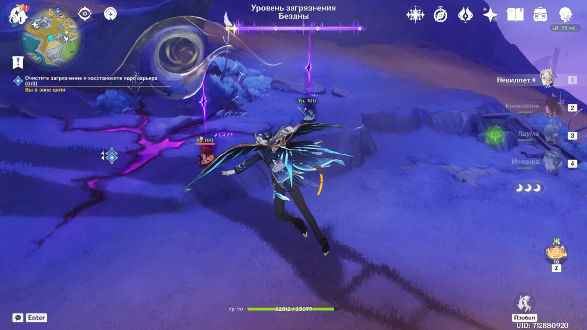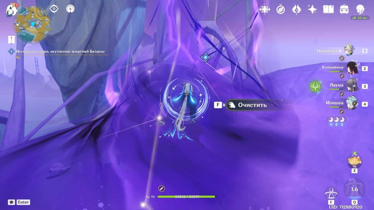 Разобравшись с врагами, зайдите в фиолетовую скверну и используйте опцию «Очистить». Здесь рекомендуем переключиться на персонажа с самым большим количеством HP.