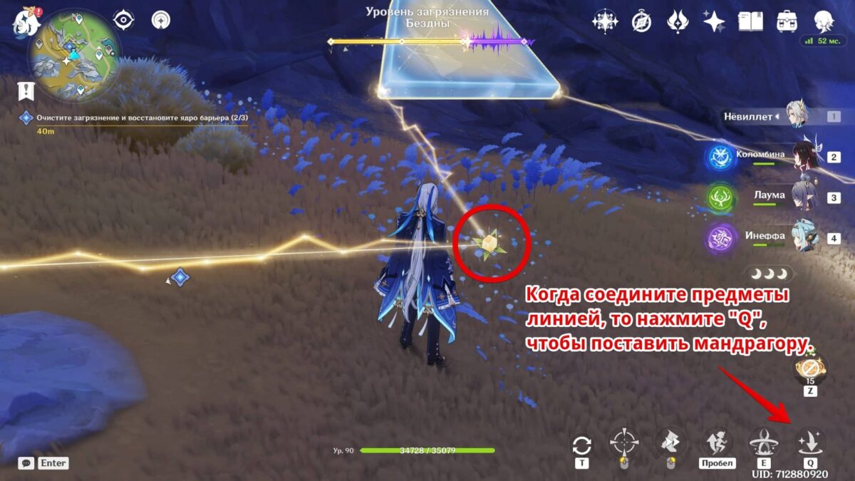 Используйте умение на «Q», чтобы зафиксировать энергетическое ядро. Всё изначально верно расположено, поэтому больше делать ничего не нужно. Если что-то нарушили, то возле растения активируйте «Сброс».