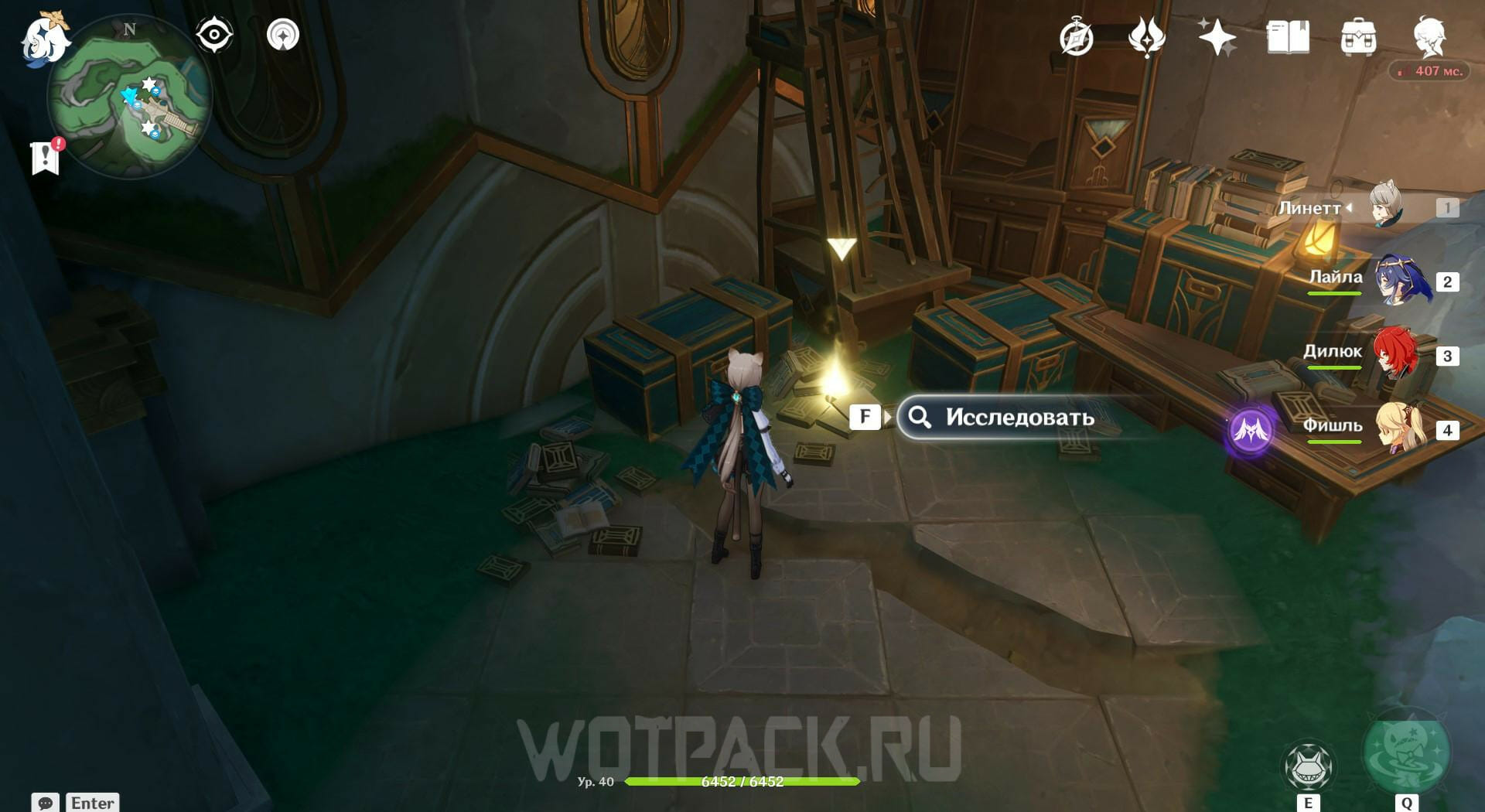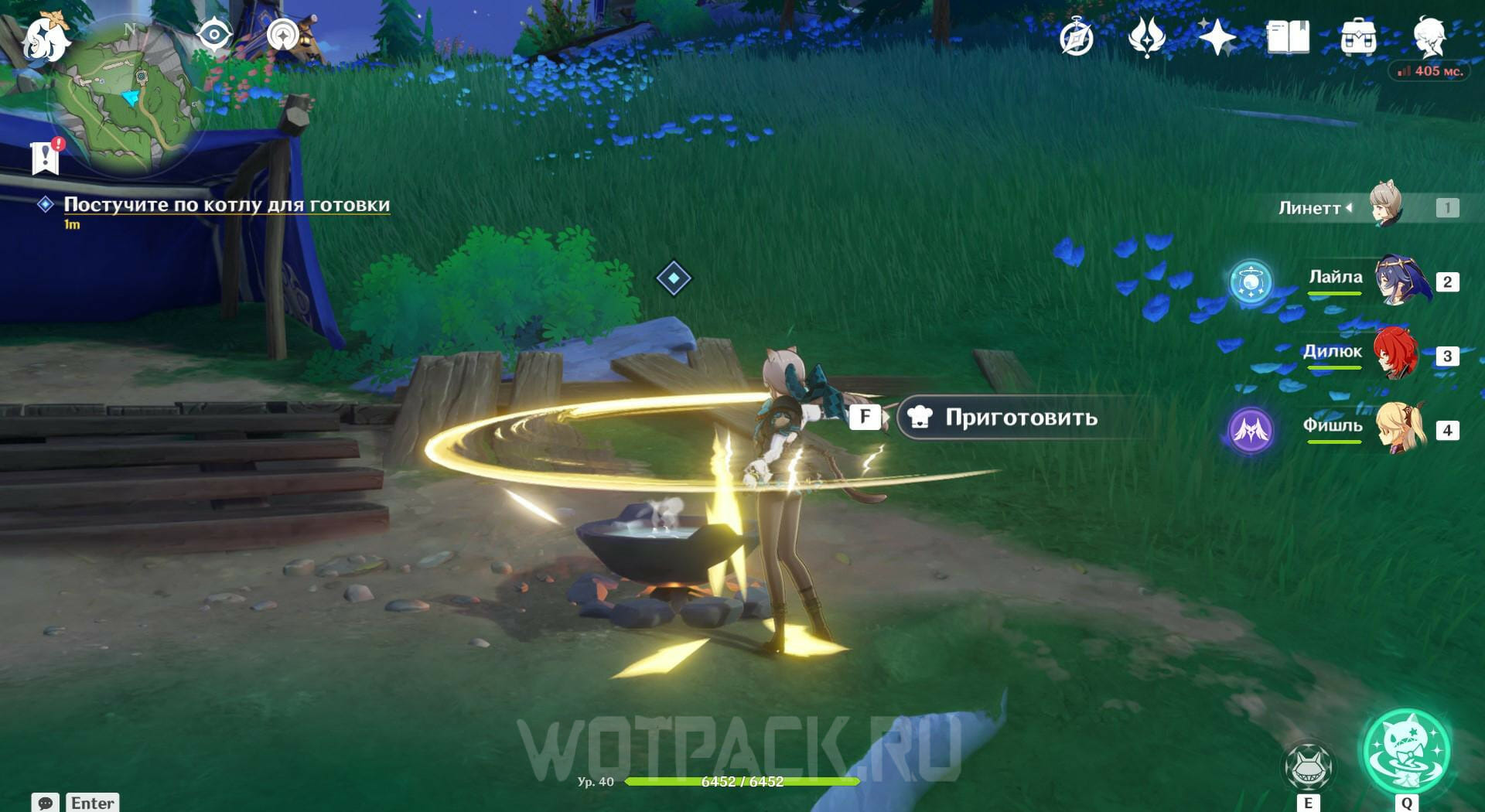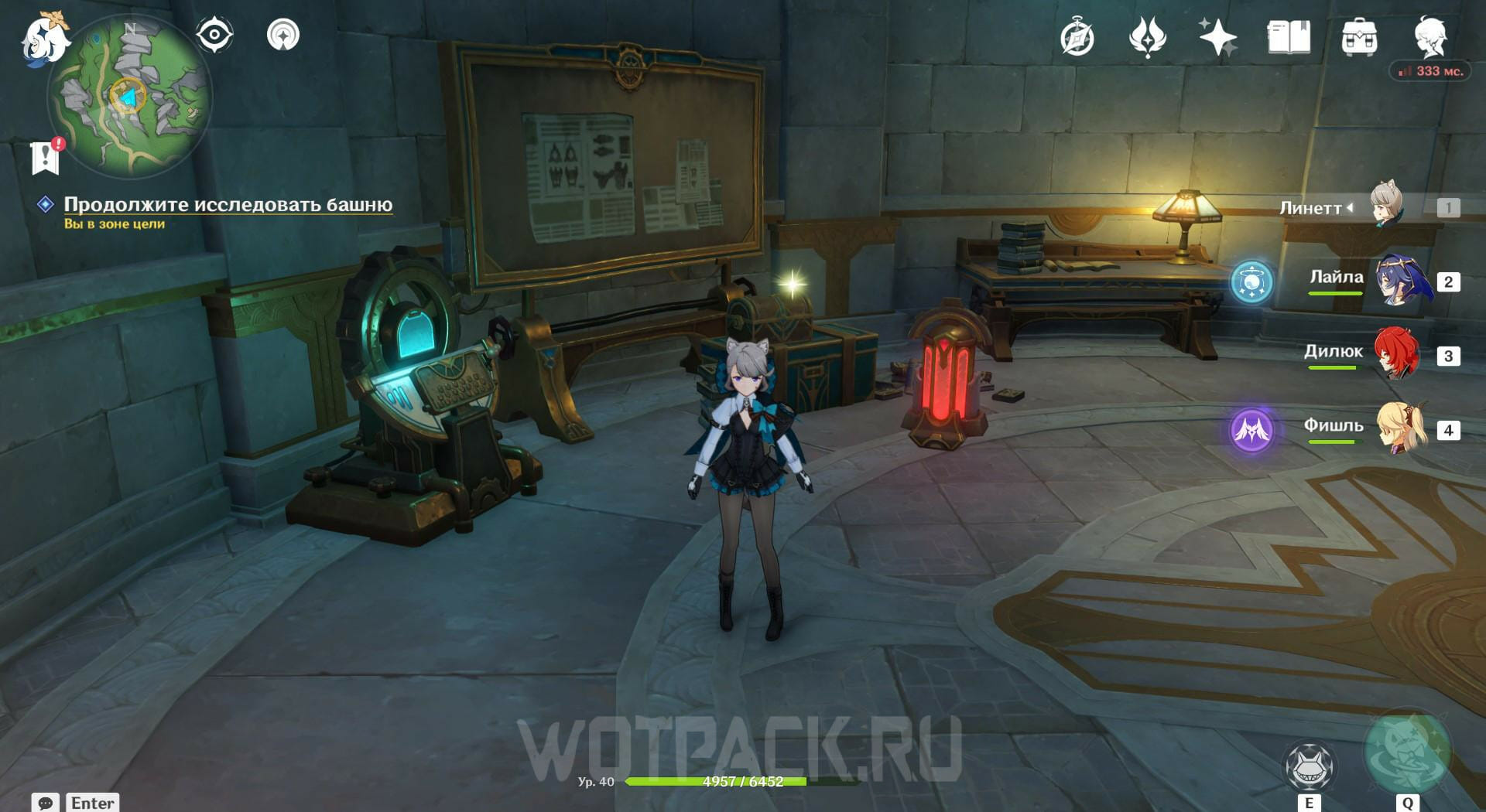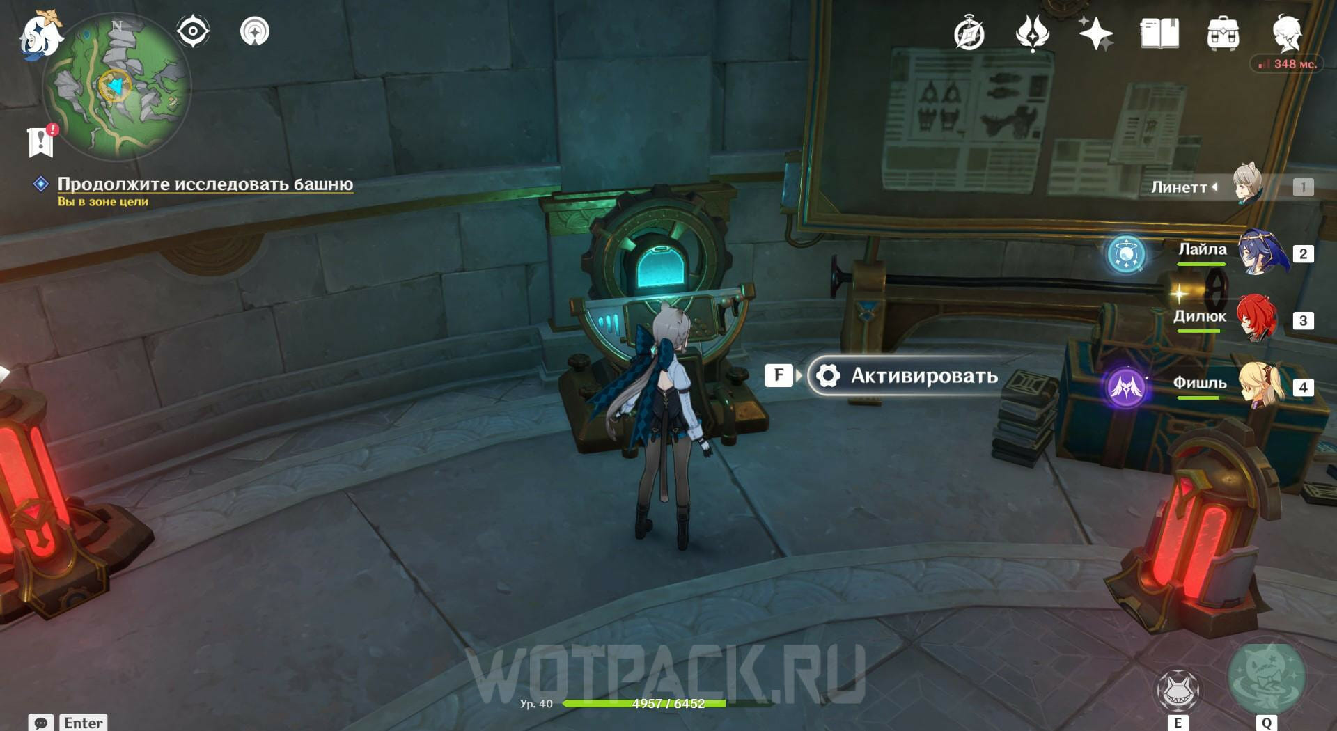 Вернитесь на один этаж ниже и прочитайте записку на столе. Покиньте башню и найдите лагерь поблизости, чтобы победить врагов в нем и посмотреть послание на ящике. Затем отправляйтесь на северо-запад и ударьте по котлу обычной атакой. Появятся трое Фатуи, с которыми нужно разобраться.