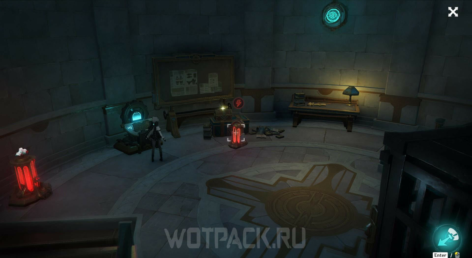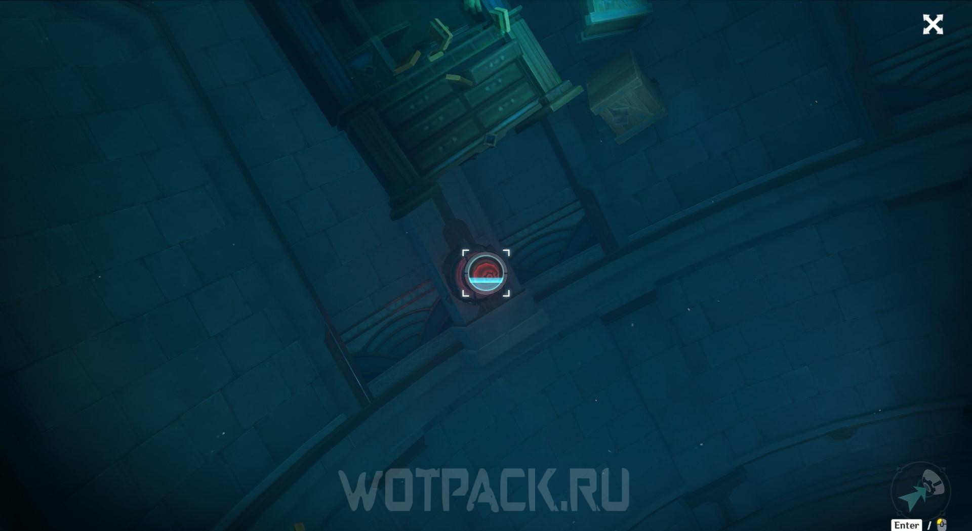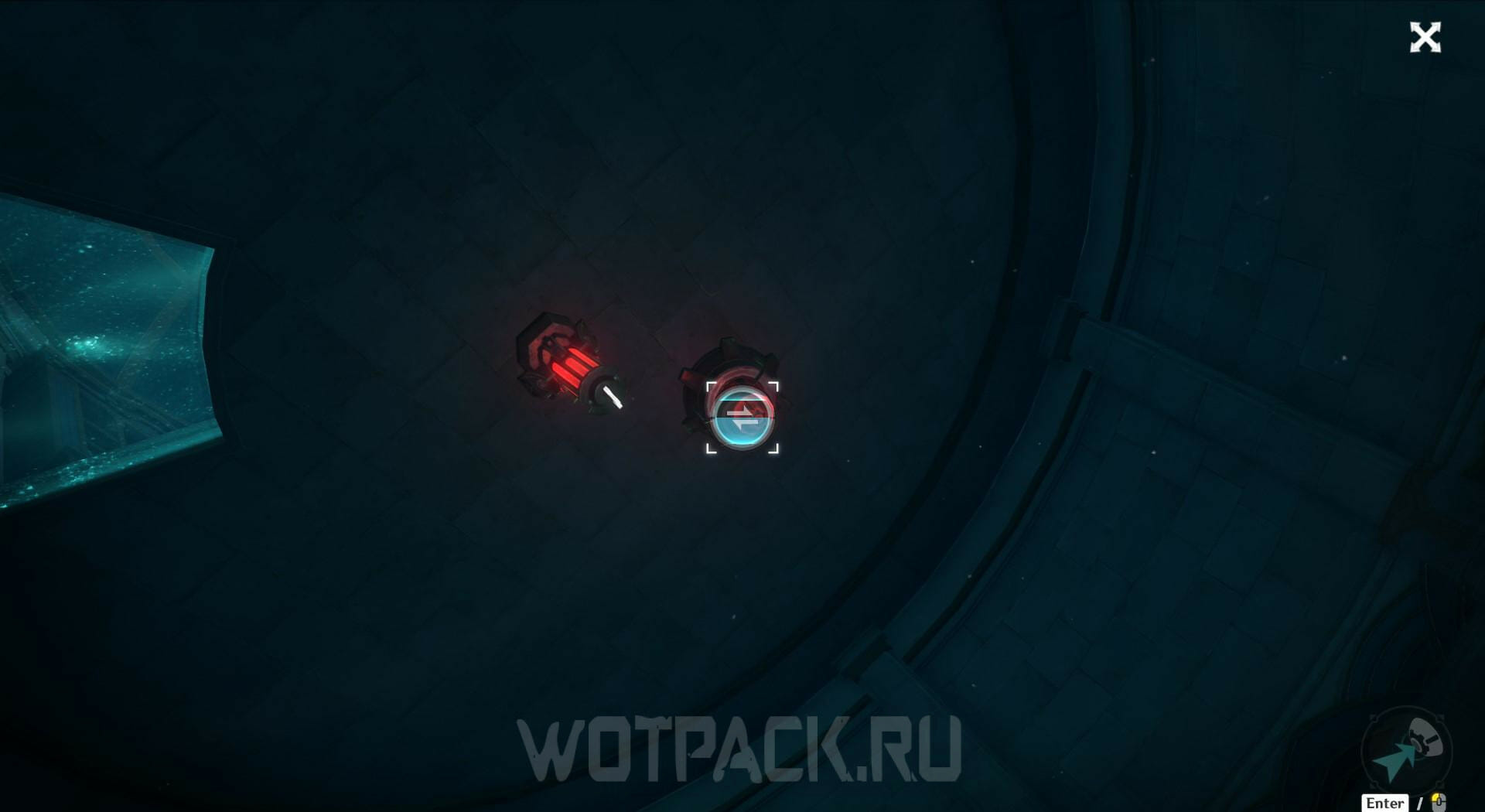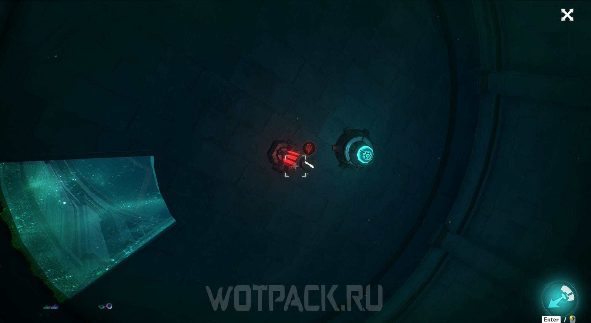 При помощи видоискателей переключайте обзор в нижнюю часть, где расположен накопитель энергии. Заберите ее из устройства, чтобы убрать барьер.