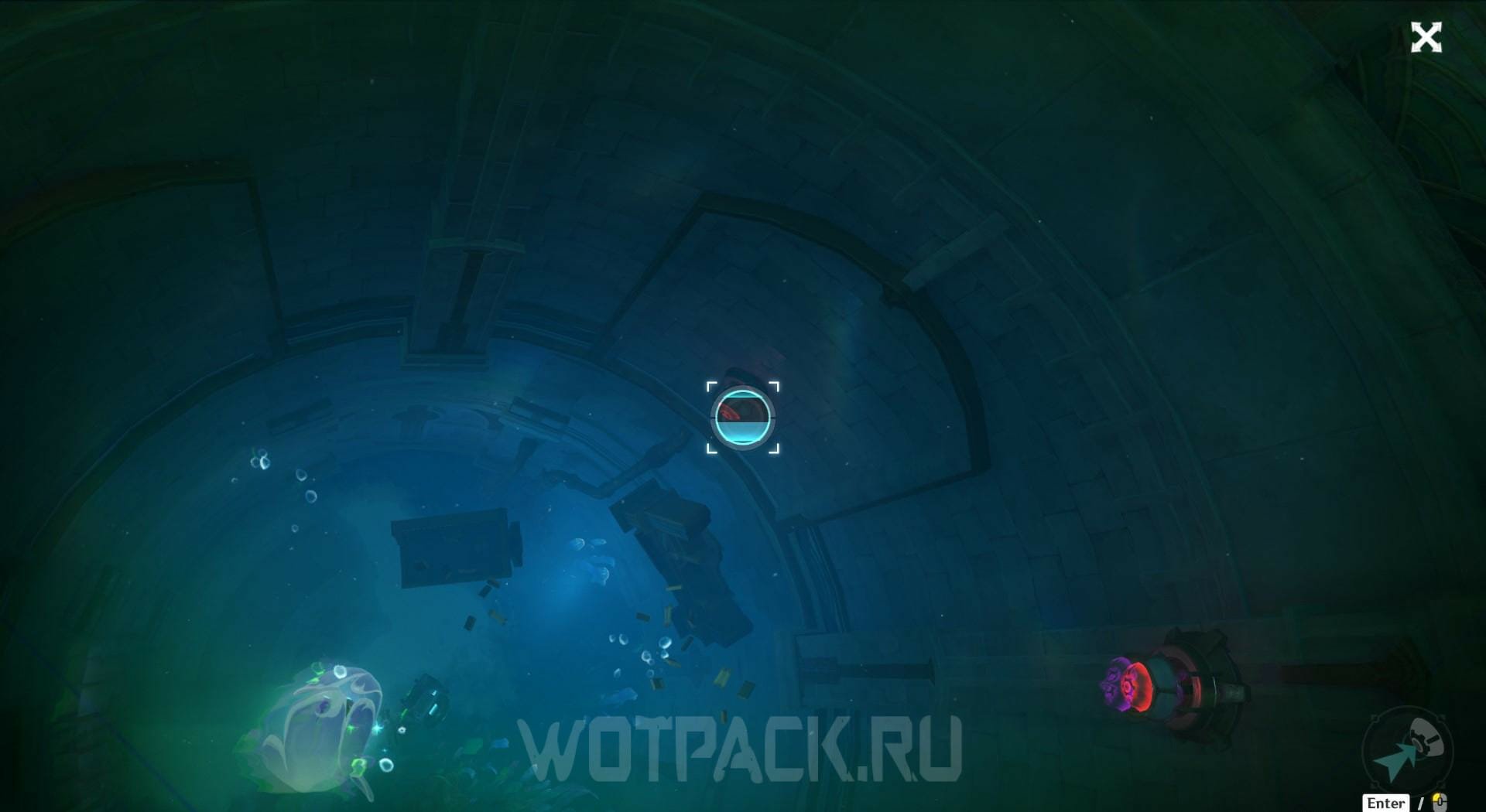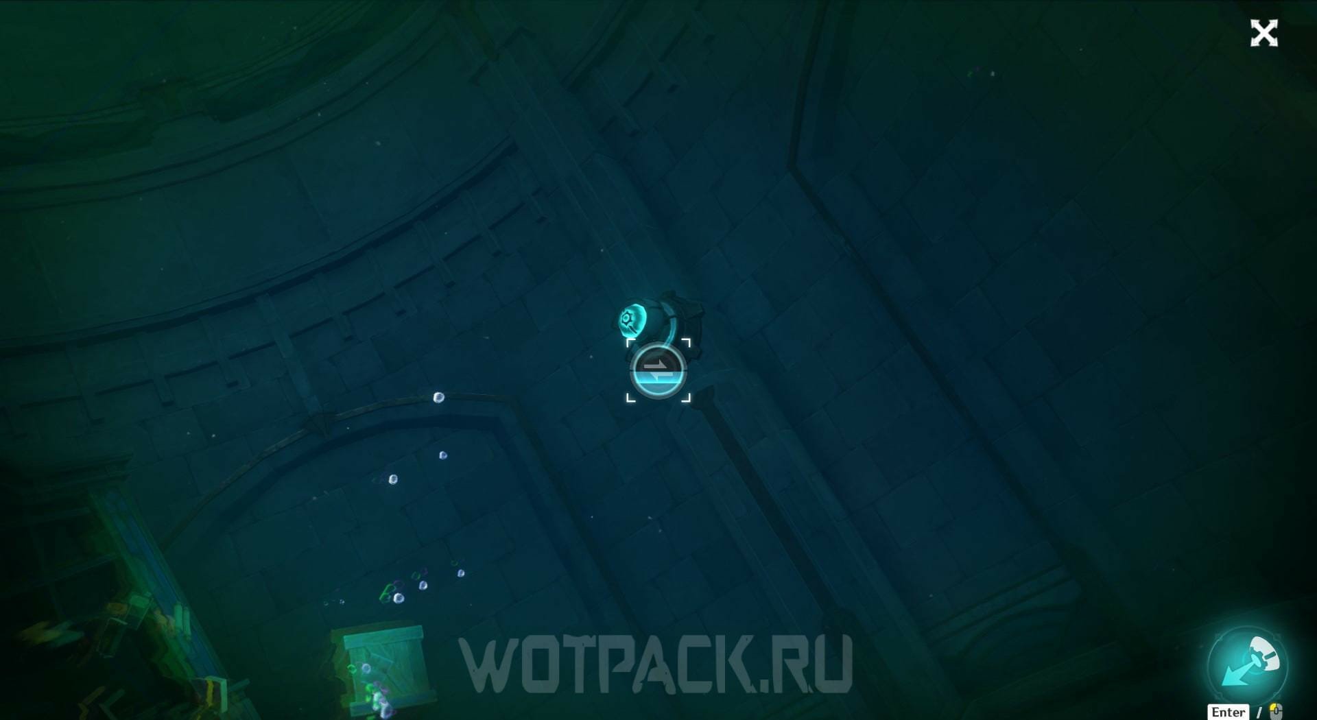 Плывите в открывшуюся дыру и активируйте терминал, чтобы получить Перфоленту, выловленную из воды.