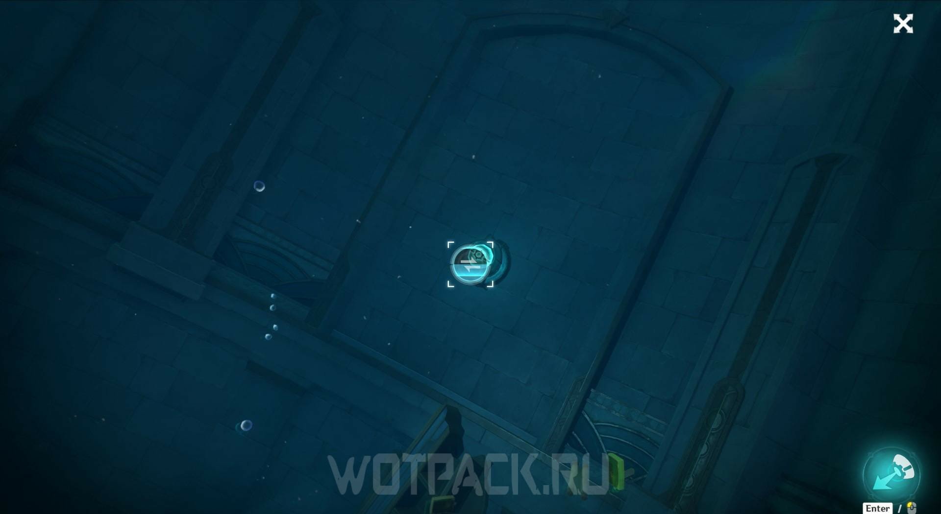 Ударьте по кристаллу и быстро плывите внутрь здания. Там активируйте терминал перемещения энергии и решите головоломку с ним.
