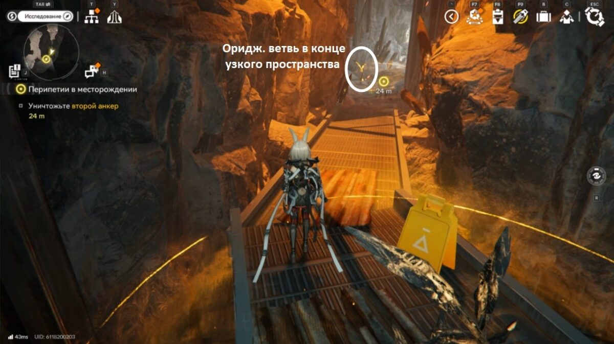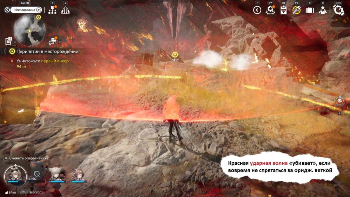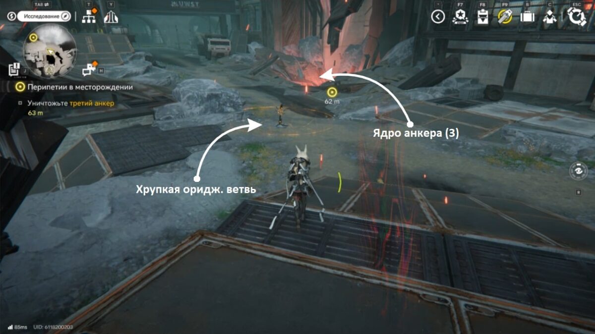 Последняя безопасная точка перед ядром — это хрупкая ориджиниевая ветвь. Как только внутри её защиты переждёте красный импульс, сразу же направляйтесь к «сердцу» анкера и цельтесь бомбой.