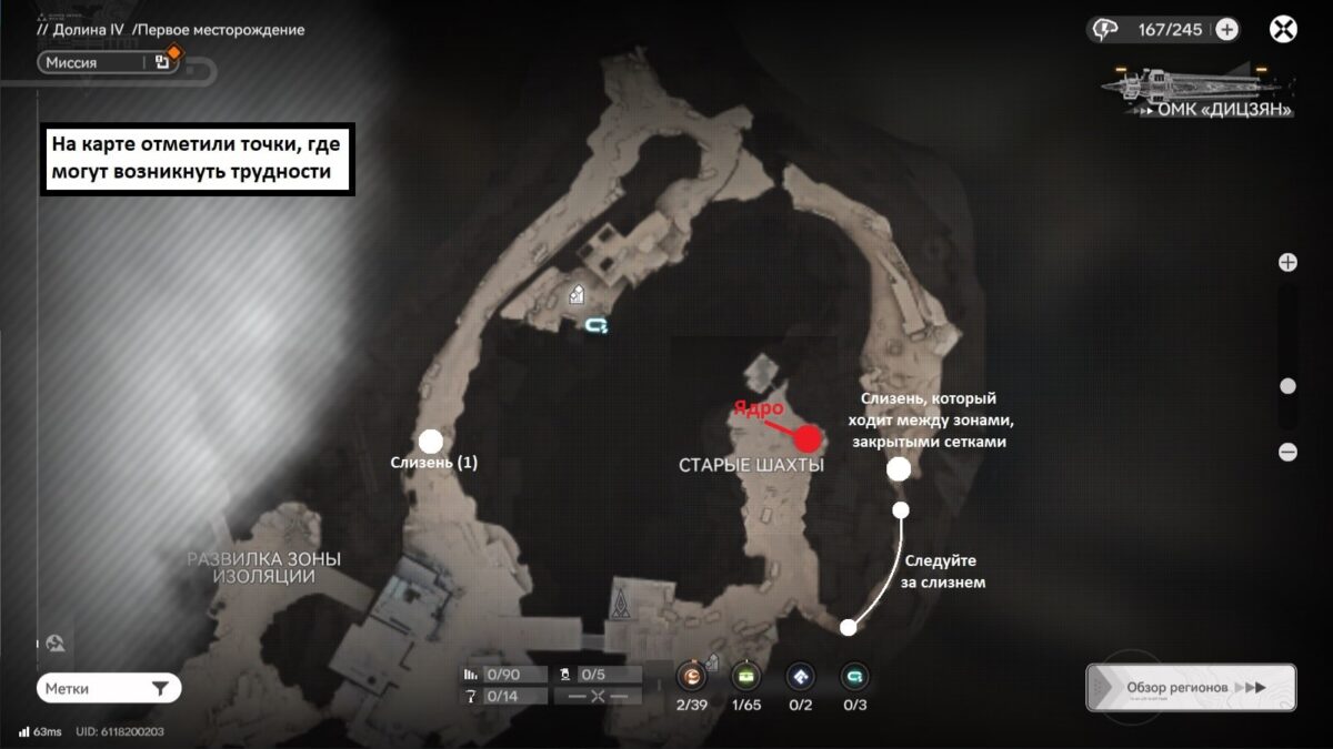 На карте отметили начало пути и сложные места, которые требуют неочевидных взаимодействий с окружением: