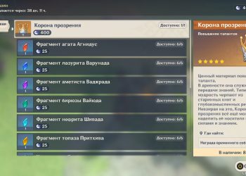 - Корона прозрения х1 – 400 раковин;