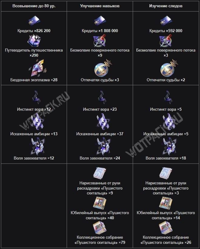 - бездонная экоплазма ×28 — компонент возвышения, получаемый за уровни Освоения;