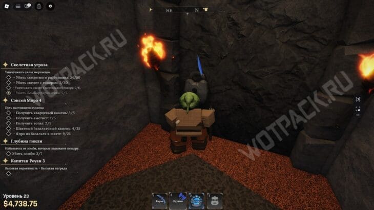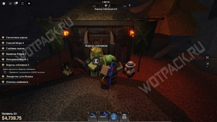 В ходе выполнения также потребуется потратиться на улучшение кирок и покупку зелий удачи. Сдав пятое задание, получите в награду особый предмет — Ключ от гоблинской пещеры.