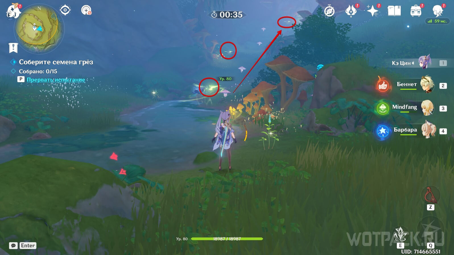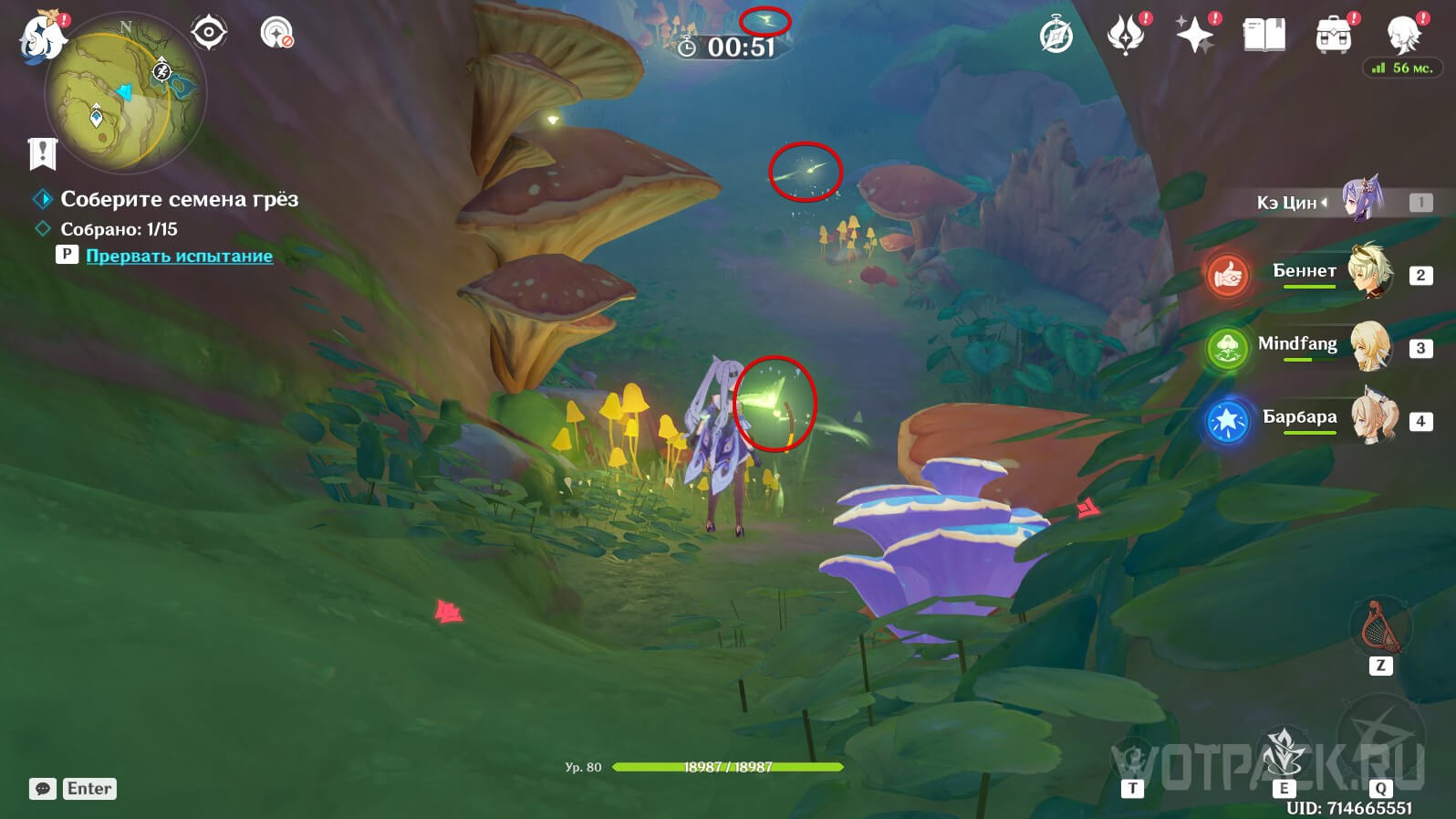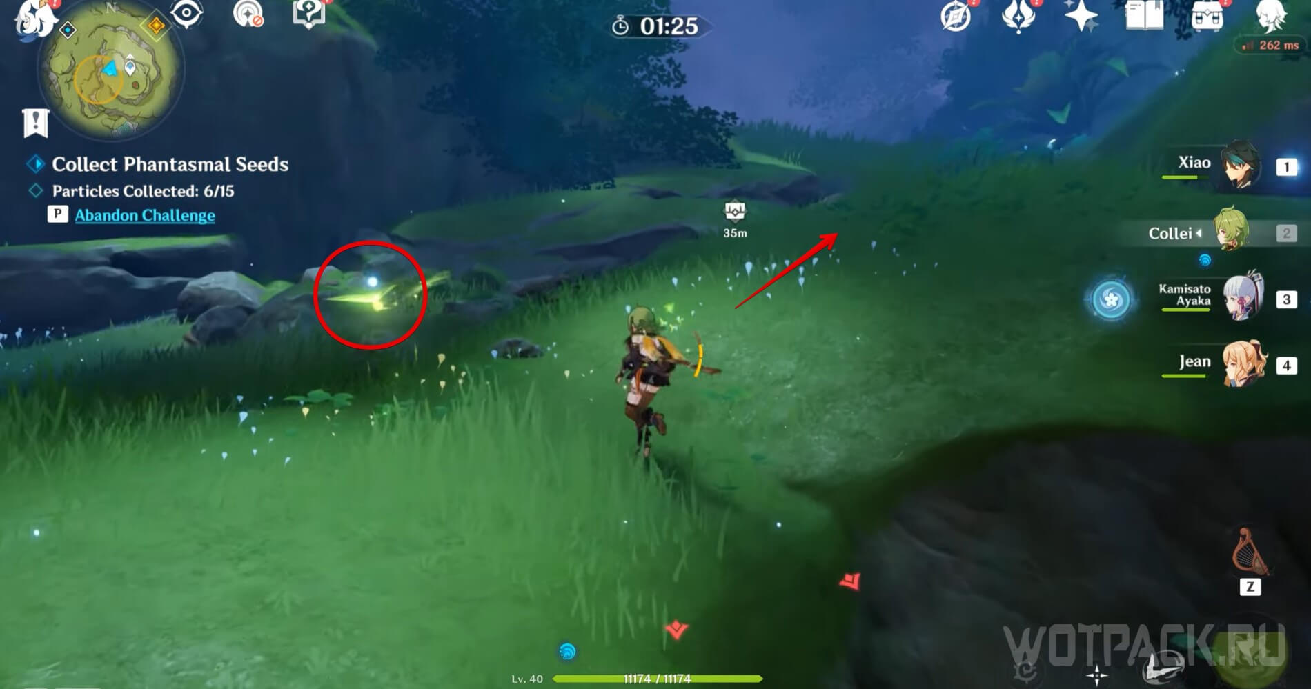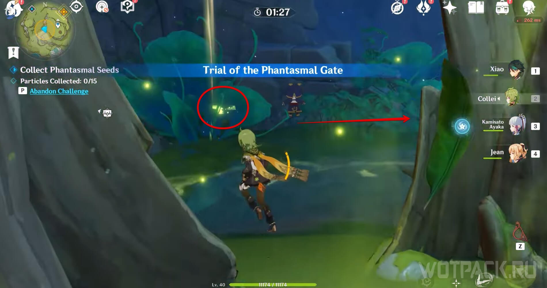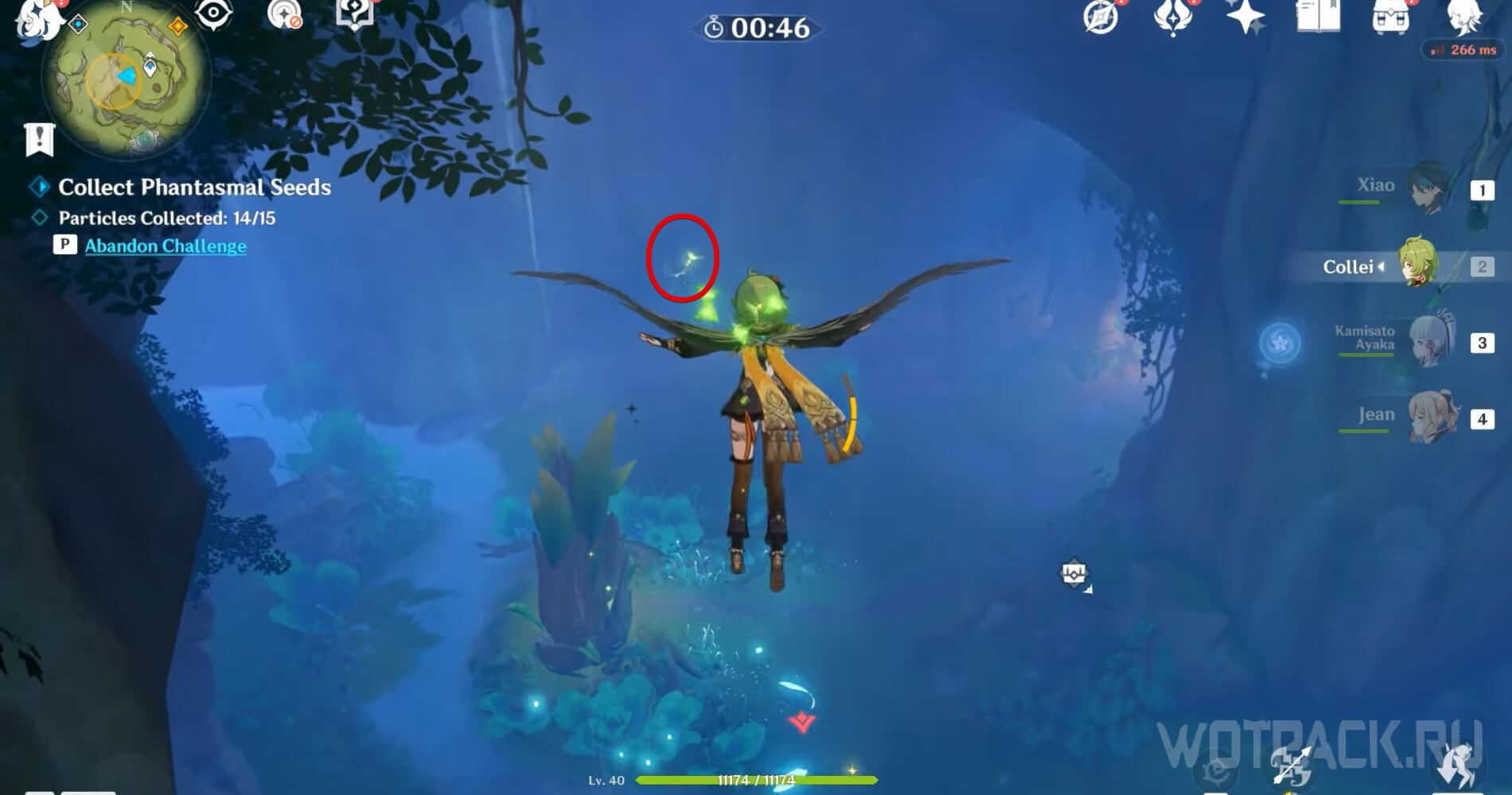 Обязательно заберитесь в дупло перед финишем, не срезайте путь. Две частицы стоят на входе и выходе из него. После сбора всех семян подойдите к желтой метке у Врат грез и нажмите на «F», чтобы завершить испытание. Скриншоты с маршрутом испытания можно увидеть выше.