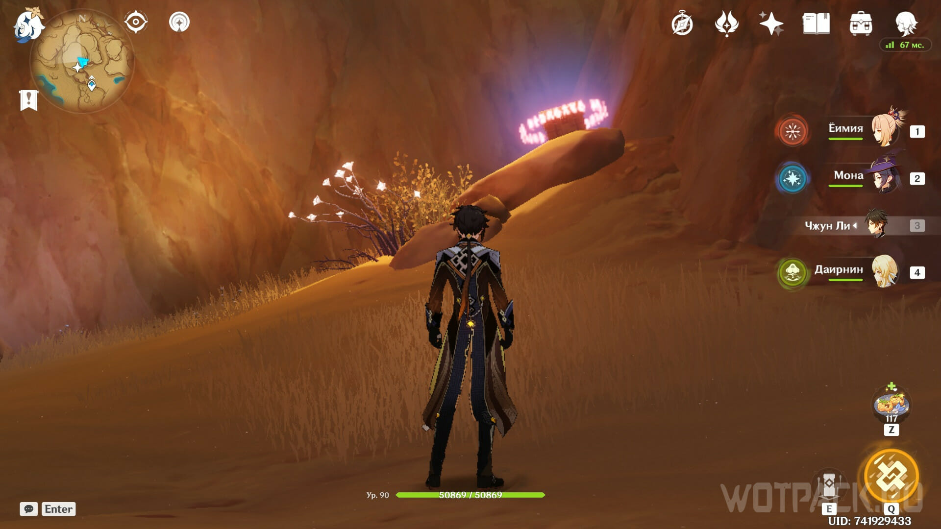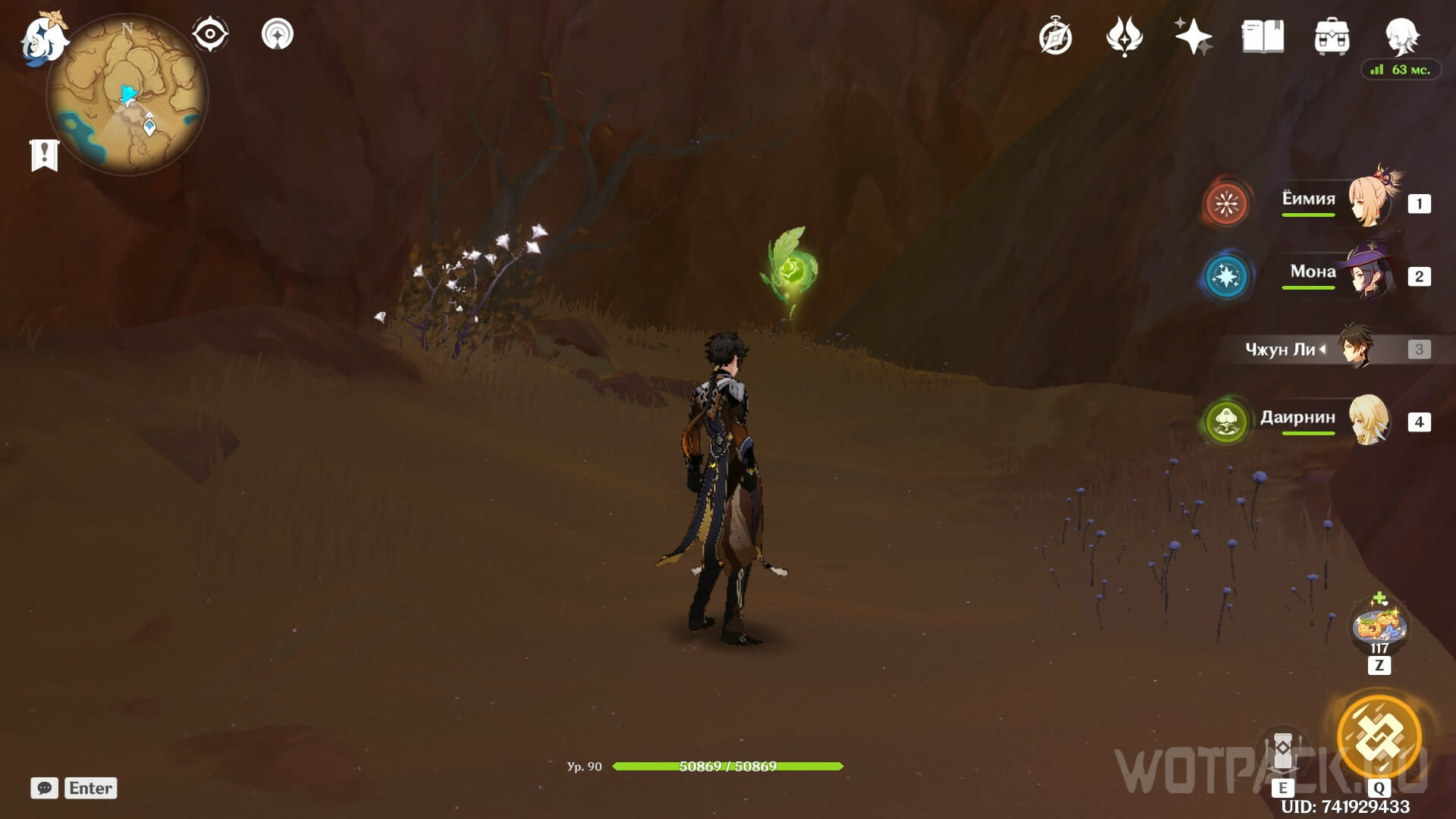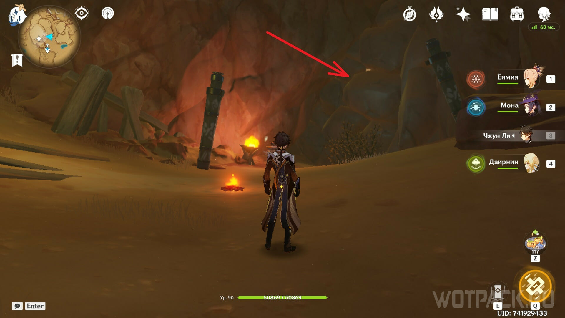 Разрушьте груду камней в первой комнате, чтобы попасть в главный зал пещеры. В центре обнаружите драгоценный сундук, охраняемый группой хиличурлов и одним лавачурлом.