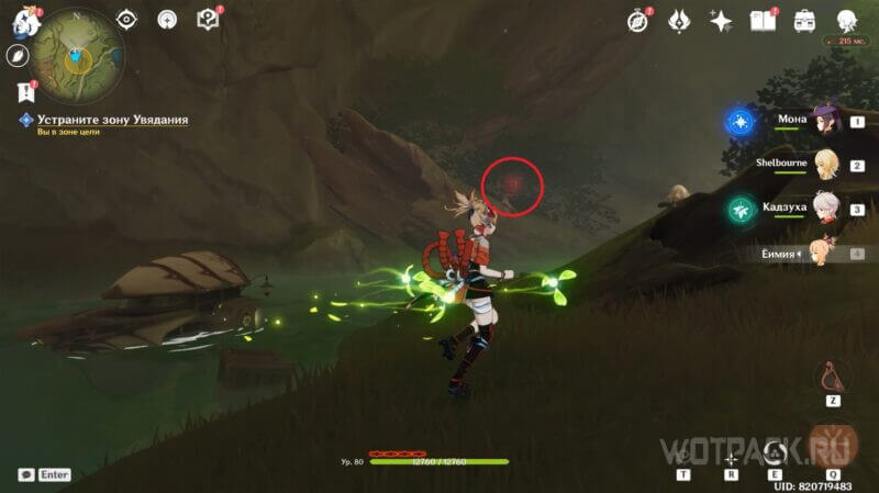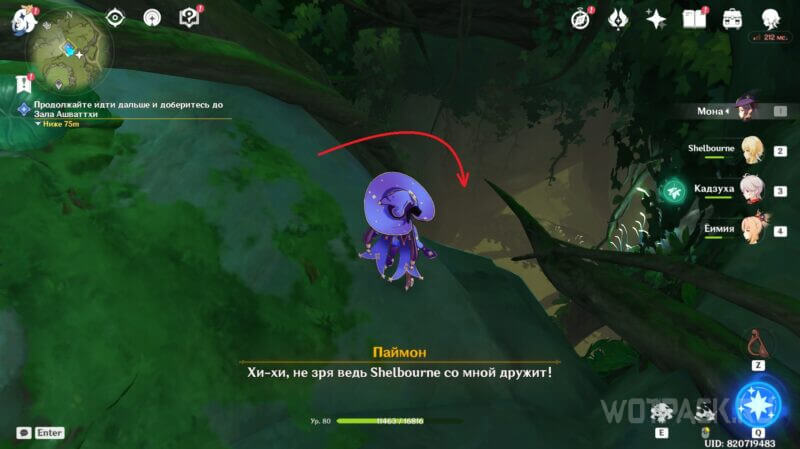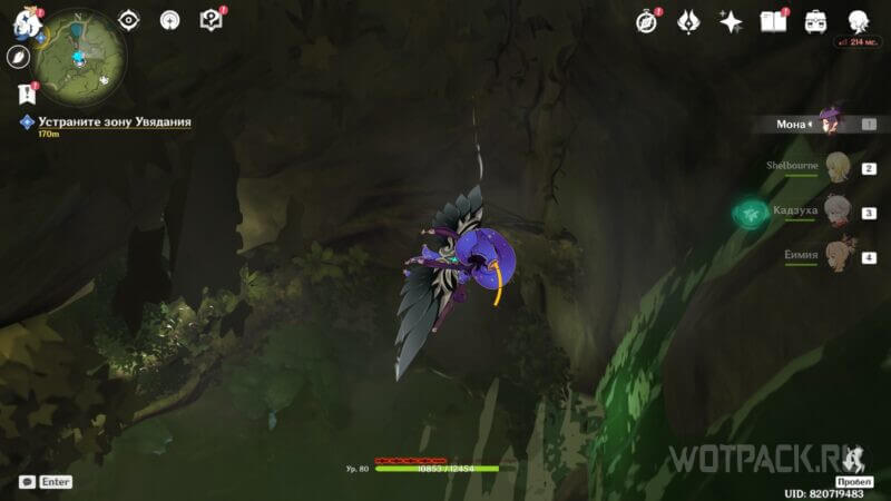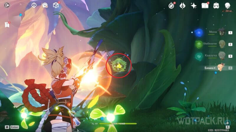 Развернитесь и прицельной атакой ударьте парящий «окулус», пока Дендро эффект активен на персонаже. Таким образом, откроется проход в закрытую зону.