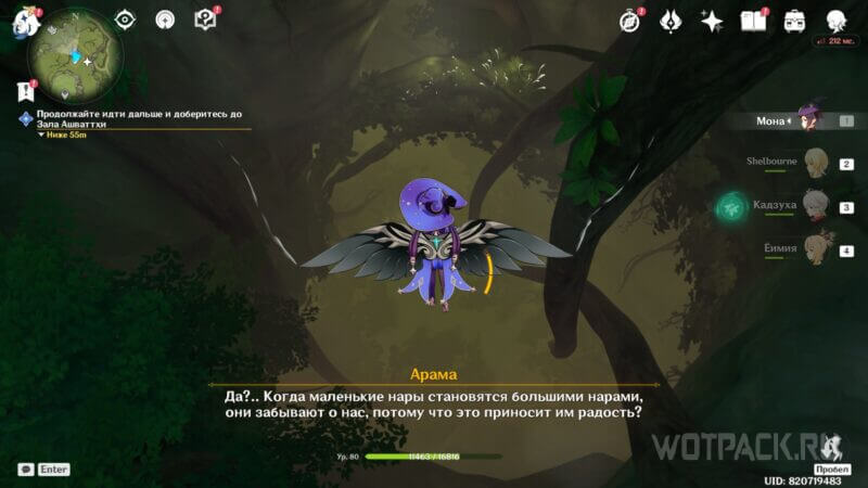 Если зашли в пещеру, но забыли выставить в отряд лучника, нажмите на значок двери, расположенный чуть выше мини-карты. Испытание прервется, а игра автоматически выведет Путешественника из данжа и активирует предыдущий этап задания. Как только отряд будет готов к сражению с Мараной, вновь подойдите к Араме и вступите с ним в диалог – это действие продолжит квестовую цепочку и вернет героя в сны васара.