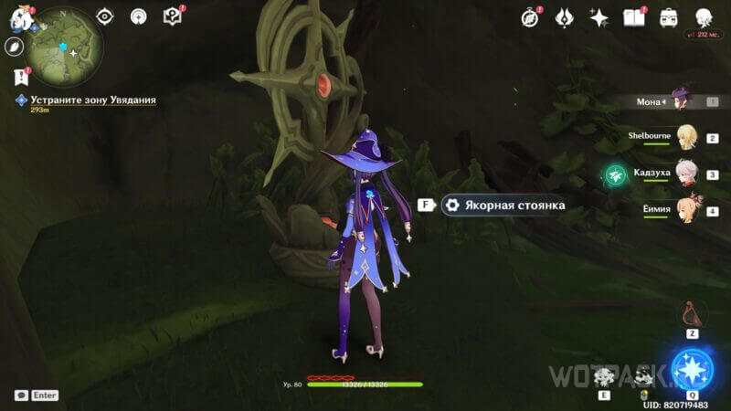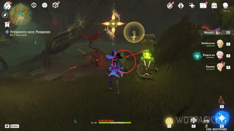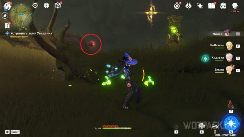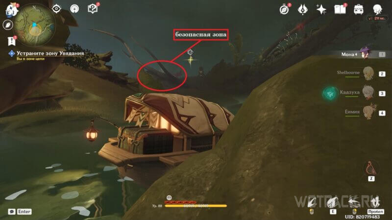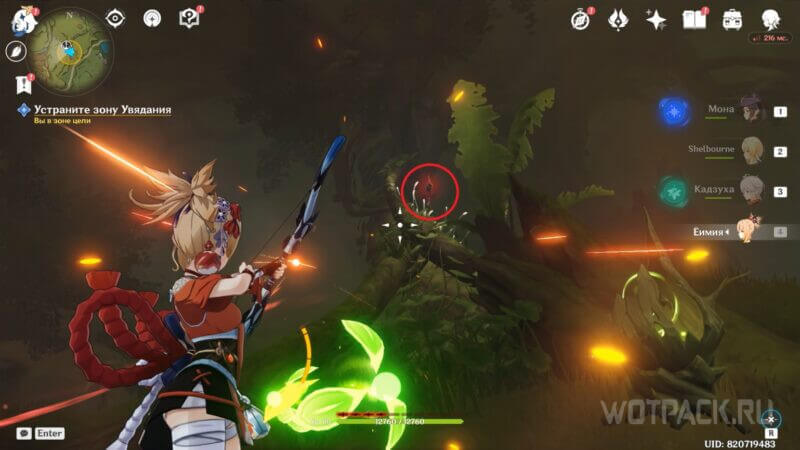 После приступите к разрушению ветвей Увядания: первая прорастает с левой стороны от безопасной зоны, вторая – на верхней части ствола дерева, у которого ранее уничтожили зараженный бутон.