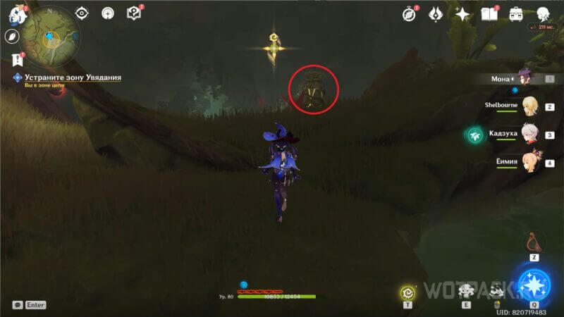 Когда монстры погибнут, очистите зону от опухоли Увядания. В награду получите драгоценный сундук.