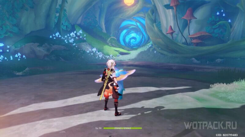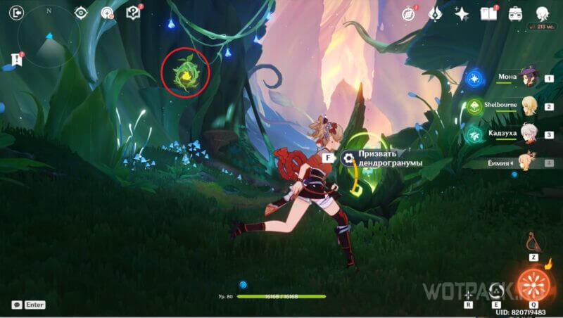Вернитесь ко входу во вторую часть подземелья и призовите Дендро эффект. Затем прицельными атаками ударьте по трем парящим «окулусам»: первый расположен на уступе недалеко от Дендрогранума, второй – с правой стороны на идентичной грибной шляпке, третий – над куполом.