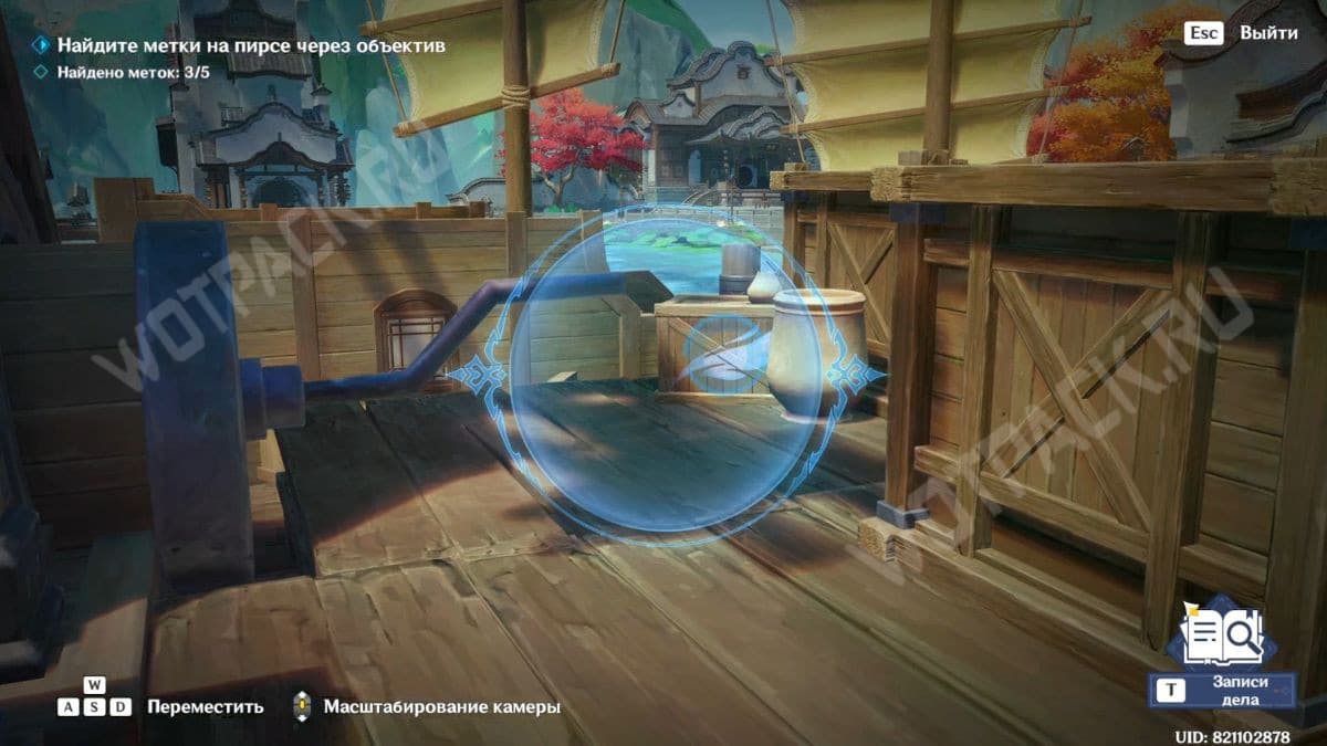 Для упрощения поиска Е Лань отдаст специальную камеру, способную видеть незримое. Наведите его на объекты, чтобы появился индикатор. После этого она зафиксирует улику, а девушка прокомментирует найденное.