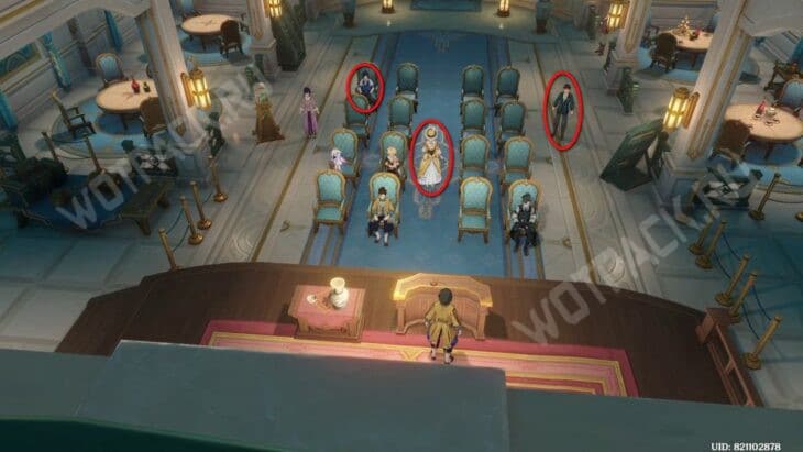 Исследовав все зоны, отправляйтесь в Фонтейн на аукцион и захватите преступника, сразившись с ним с помощью Е Лань.