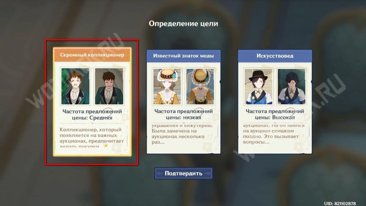 Как только отметите всех, нужно определить цель, являющуюся «разменной монетой» Темного Финансиста. Выберите скромного коллекционера.