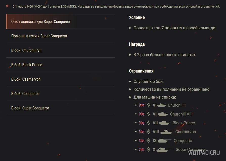 Приветствуем, танкисты! С вами Wotpack и сегодня мы поговорим о третьей ветке, которая в марте участвует в акции «В бой!» Super Conqueror. Британские тяжи в современном рандоме одни из самых имбовых за счет своих пушек. Но обо всем по порядку. Вкратце расскажем о преимуществах техники и представим четыре повода, почему нужно успеть выкачать ее в марте.