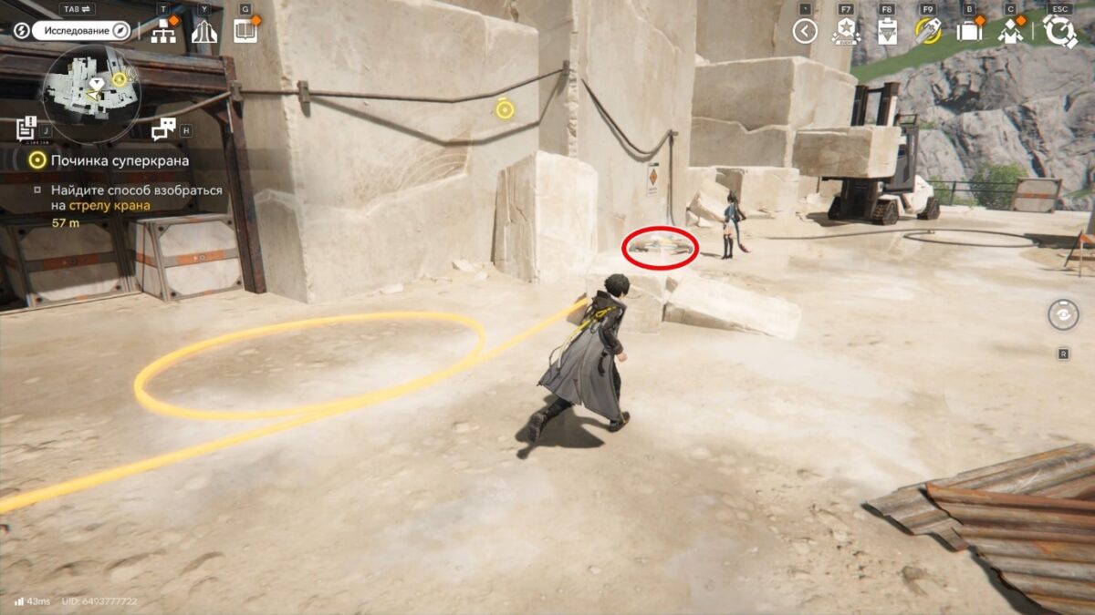 Чтобы открыть новые области в Карьере Эберрей, почините суперкран, обеспечивающий перемещение между участками гигантской выработки.