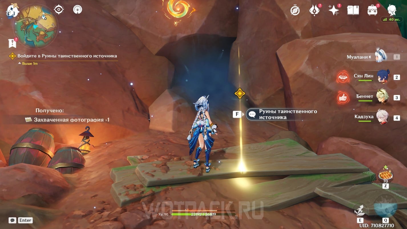 Под таинственным источником в Genshin Impact — этап квеста, доступный во время прохождения задания Архонтов «Радуга обречена сгореть». Представляет собой загадку с механизмами, расположенных в глубине квестового подземелья в Натлане. Чтобы решить головоломку, необходимо собрать рисунок на конструкции так, чтобы он совпадал с изображением на фотографии.