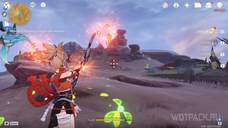 В питомнике образовалась зона Увядания, а территорию охраняют враждебно настроенные плесенники. Рекомендуем привлечь их внимание прицельными выстрелами из лука, тем самым вытащив противников из зараженной зоны.